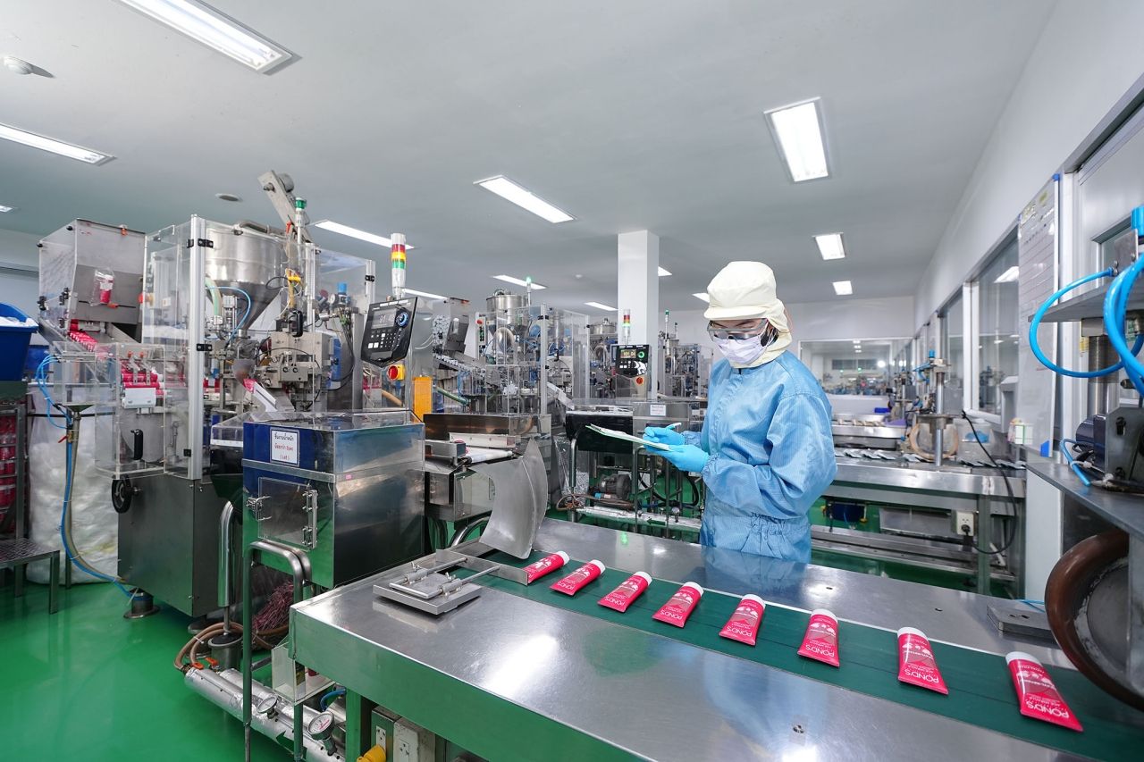 ล่าสุดเราได้ทุ่มงบประมาณกว่า 1,000 ล้านบาท สร้างโกดังสินค้าและต่อเติมอาคารที่สมุทรปราการบนเนื้อที่กว่า 150,000 ตารางเมตร เพื่อรองรับกำลังการผลิตที่สูงถึง 10,000 ตัน หรือประมาณมากกว่า 100 ล้านชิ้นต่อเดือน รวมถึงยังนำเครื่องจักรที่มีประสิทธิภาพรวมถึง AI และระบบบริหารจัดการให้ทันสมัย โดยสัดส่วนการผลิตสินค้าของโรงงานในปัจจุบัน คือกลุ่ม Skin Care, Personal Care, Hair product 65%, Make up 15%, Homecare 10-15% และอื่นๆ 10%