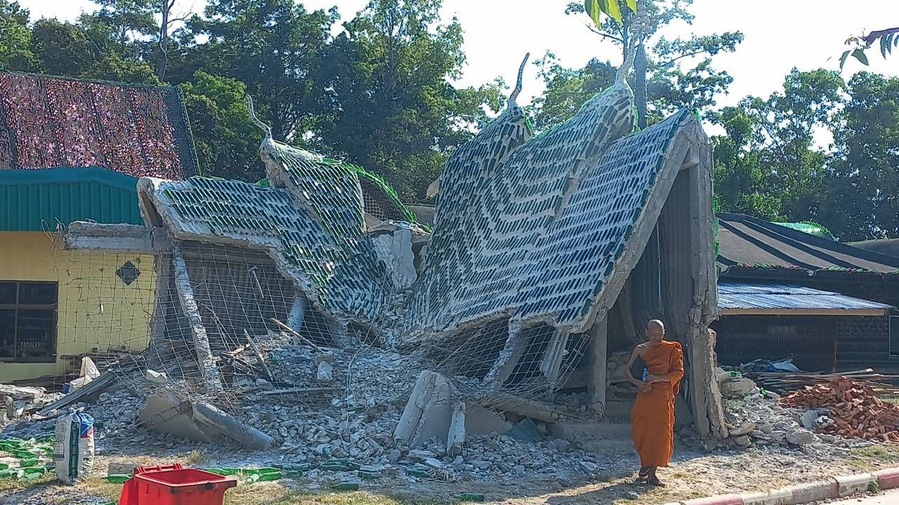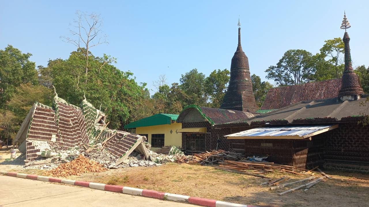 ดร.เพ็ญศรี สารีบุตร ประธานสภาวัฒนธรรมอำเภอขุนหาญ กล่าวต่อว่า ก่อนหน้านี้ได้กำลังก่อสร้างเจดีย์หลังเล็กๆ ไว้แล้ว แต่ด้วยการก่อสร้างที่เร่งทำเร่งสร้าง จึงเกิดผิดพลาดและได้เกิดทรุดและถล่มลงมา เชื่อบารมีหลวงพ่อรอดคุ้มครอง ไม่มีใครได้รับบาดเจ็บจากเหตุการณ์นั้น สำหรับวัดล้านขวดนั้น มีการก่อสร้างมาตั้งแต่ปี 2525 เป็นความภูมิใจของพุทธศาสนิกชน ซึ่งในปัจจุบันก็ยังมีความงามสง่า งดงาม มีพระอุโบสถที่ทำด้วยขวดแก้ว “สิมกลางน้ำ” หรือ โบสถ์กลางน้ำ พระประธานองค์ใหญ่จากหินหยกขาว หินหยกพม่า พระนอนองค์ใหญ่ รวมทั้งสิ่งก่อสร้างต่างๆ ที่รายรอบวัดก็ล้วนก่อสร้างจากขวดแก้ว ยังงดงามและสวยงาม จึงอยากขอเชิญชวนนักท่องเที่ยวและพุทธศาสนิกชนมาเที่ยวชม มาให้กำลังใจ มาเติมเต็ม มาเติมบุญให้วัดล้านขวดเจริญงดงาม อยู่คู่ชาวพุทธและชาวจังหวัดศรีสะเกษสืบไป
