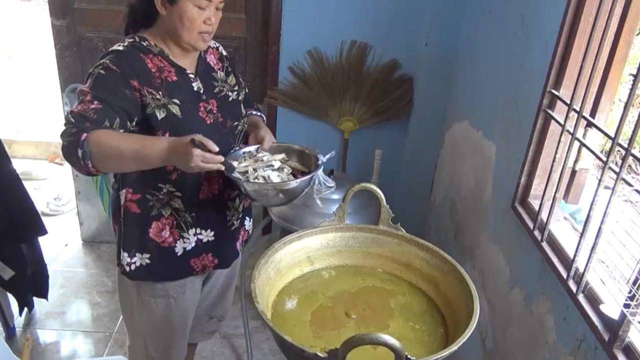 3.ต้มไตปลา ตั้งหม้อ ใส่หอมแดง, ข่า, ตะไคร้, ใบมะกรูดฉีก, มะขามเปียก ตามด้วยไตปลาและน้ำเล็กน้อย พอเดือดได้ที่ยกขึ้น กรองแล้วพักไว้