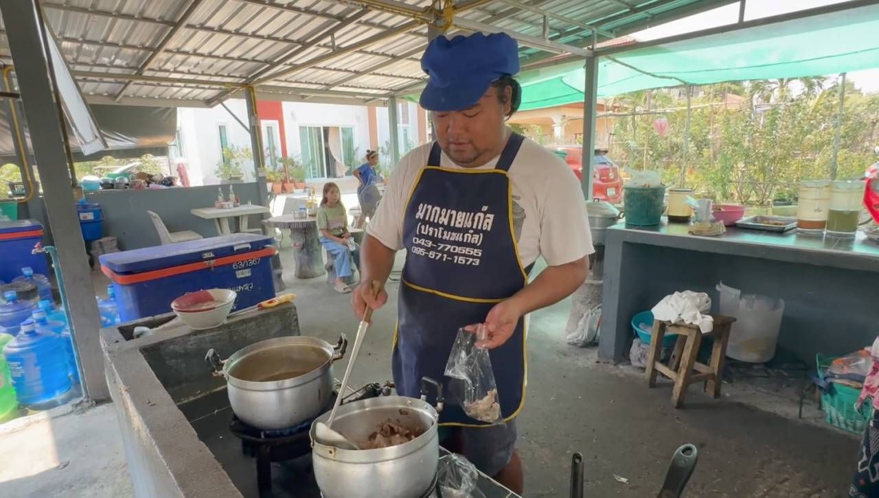 นางสุวรรณี ดีโม้ อายุ 59 ปี กล่าวว่า ตัวเองเป็นคนคิดสูตรทำก๋วยจั๊บเส้นสดขายเอง พอช่วงสถานการณ์โรคโควิด-19 ระบาดเมื่อปี 2562 ได้ลูกชายกลับมาอยู่บ้านก็ได้มีคนมาช่วย เขาจะตื่นเช้าประมาณตี 5 ก็เริ่มจากต้มน้ำซุปด้วยโครงไก่กับกระดูกหมู แล้วก็ตุ๋นขาไก่ประมาณ 8 กก.ทิ้งไว้ แล้วเริ่มทำเส้นก๋วยจั๊บจากแป้งข้าวเจ้าและแป้งมัน มาผสมและนวดจนเข้ากัน วันละประมาณ 12 กก.แล้วหั่นให้เป็นเส้นเสร็จแล้วนำเข้าตู้เย็นเก็บไว้ จากนั้นนำเอาออกมาต้มขาย ทำให้เส้นของเราไม่เหมือนใครสดใหม่ทุกวัน เส้นเหนียวนุ่มไม่เหมือนใคร