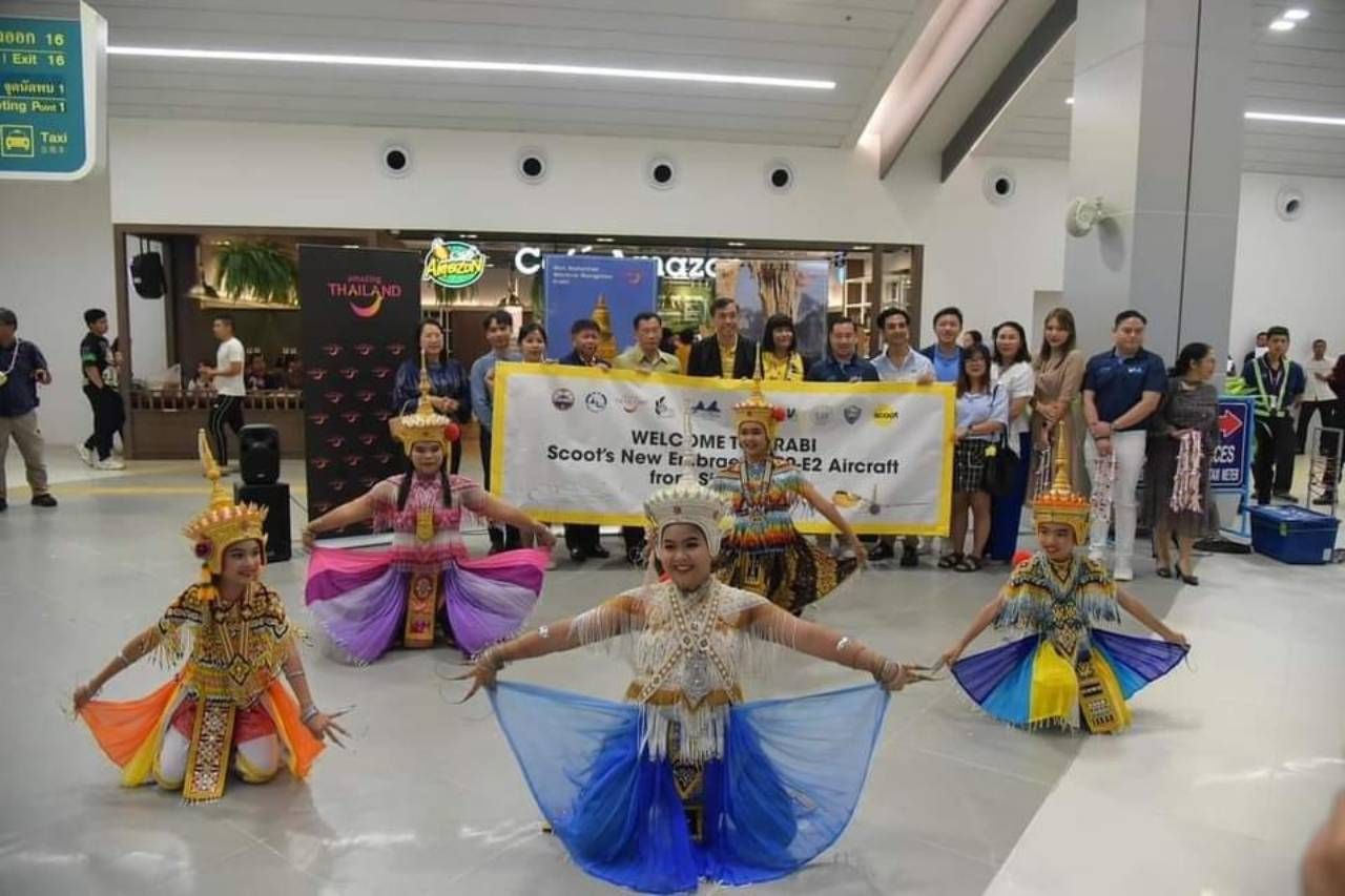 ท่าอากาศยานนานาชาติกระบี่ ต้อนรับนักท่องเที่ยวจำนวน 112 คน ที่เดินทางมาจากประเทศสิงคโปร์ ด้วยเที่ยวบินตรงของสายการบินสกู๊ต (Scoot) โดยมีการจัดการแสดงมโนราห์โชว์เพื่อสร้างความประทับใจ อีกทั้งเป็นเที่ยวบินแรกของเครื่องบินใหม่ Embraer E190-E2 ในภูมิภาคเอเชียแปซิฟิก