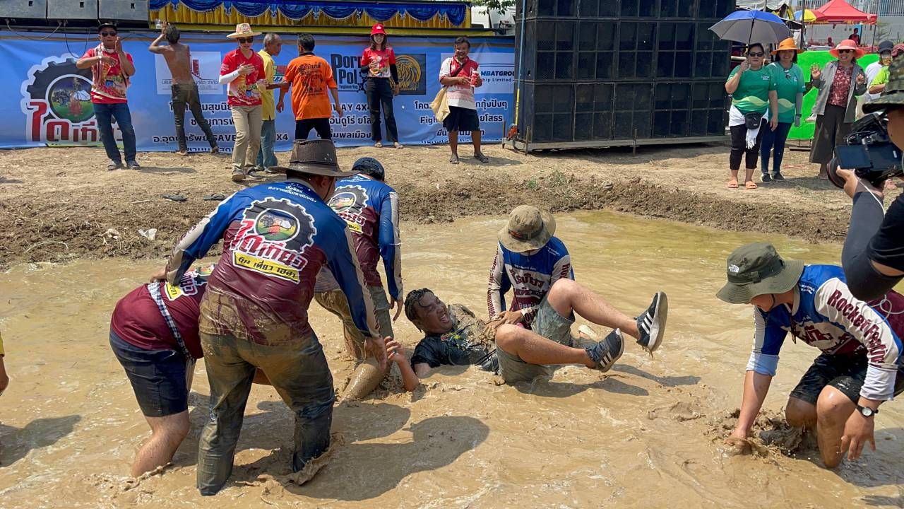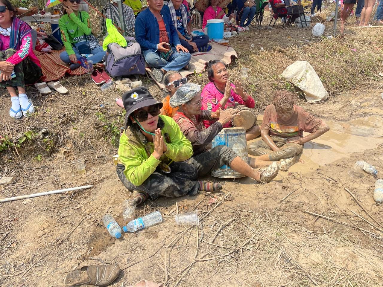 ส่วนไฮไลต์งานจุดบั้งไฟครั้งนี้จะมีคณะกองเชียร์ทีมบั้งไฟ ได้ขุดบ่อโคลนเอาไว้ เนื่องจากหากบั้งไฟของคณะใดแตกก็ต้องโดนลงโทษโดยการจับโยนลงโคลนตม แต่ในปัจจุบันการเล่นโคลนตมนั้นเป็นการสร้างสีสันความสนุกสนาน และช่วยคลายความร้อนอีกด้วย.