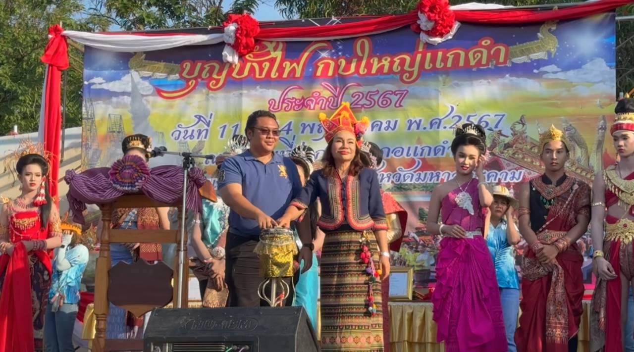ผู้สื่อข่าวรายงานว่า เมื่อเร็วๆ นี้ ดร.คมคาย อุดรพิมพ์ นายกองค์การบริหารส่วนจังหวัดมหาสารคาม เป็นประธานเปิดงานประเพณีบุญบั้งไฟ กบใหญ่แกดำ ประจำปี 2567 ที่สนามหน้าที่ว่าการอำเภอแกดำ จังหวัดมหาสารคาม โดยงานนี้ชาวอำเภอแกดำร่วมกับ อบต.ทั้ง 6 แห่ง จัดขึ้นทุกปี เพื่อเป็นการส่งเสริมและอนุรักษ์ขนบธรรมเนียมประเพณีของคนในชุมชนท้องถิ่น และอนุรักษ์พันธุ์กบพื้นบ้าน