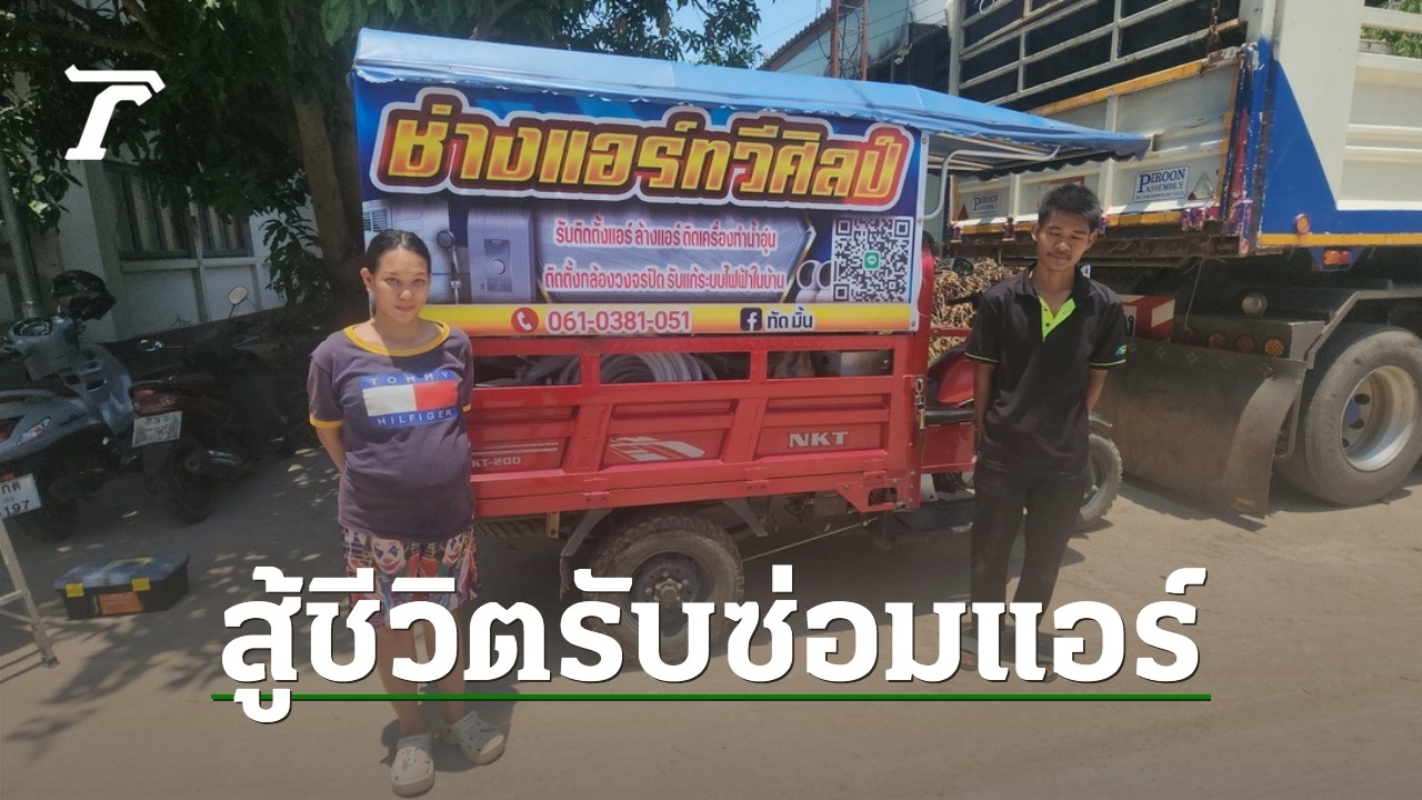 เมื่อเวลา 12.10 น. วันที่ 15 พฤษภาคม 2567 ผู้สื่อข่าวไปพบกับสองผัวเมียสู้ชีวิต นายทวีศิลป์ ศรีม่น อายุ 27 ปี และนางวรดา มีตา อายุ 26 ปี ภรรยาที่กำลังตั้งครรภ์แก่ใกล้คลอด ทั้งคู่อยู่อำเภอเมืองเลย จ.เลย โดยแต่ละวันทั้ง 2 คนจะขี่รถสามล้อเครื่องตระเวนรับซ่อมแอร์บ้านไปทั่วเมืองเลย ในราคาที่ถูก รวดเร็ว จนมีลูกค้าเรียกใช้บริการเป็นจำนวนมาก