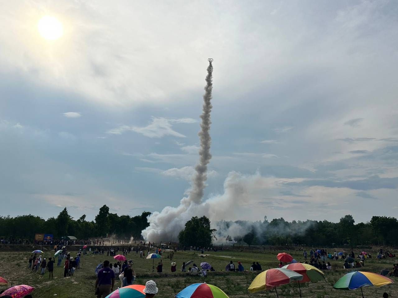 ผู้สื่อข่าวรายงานว่า วานนี้ (19 พ.ค. 2567) ที่บริเวณลานจุดบั้งไฟตะไลล้าน บ้านกุดหว้า ต.กุดหว้า อ.กุฉินารายณ์ จ.กาฬสินธุ์ มีนักท่องเที่ยวเรือนหมื่นได้เดินทางมาสัมผัสบรรยากาศ นักท่องเที่ยวทั่วสารทิศ แห่ไปงานประเพณีวัฒนธรรมผู้ไทบุญบั้งไฟตะไลล้าน บ้านกุดหว้า อ.กุฉินารายณ์ จ.กาฬสินธุ์ ทะยานสูงเสียดฟ้า บูชาพญาแถนขอฝน โดยปีนี้มีขนาดใหญ่สุด 10 ล้าน ร่วมจุดด้วยรวมแล้วในงานมีกว่า 70 บั้ง มีการจุดบั้งไฟหลายรูปแบบมีบั้งไฟตะไล 2 ล้าน ที่วัดจากปากกระบอก 6.5 นิ้ว จำนวน 2 บั้ง ราคาบั้งละ 80,000 บาท มีค่ายบั้งไฟศิษย์คัมภีร์และค่ายบั้งไฟเทพดาดาวเหนือ