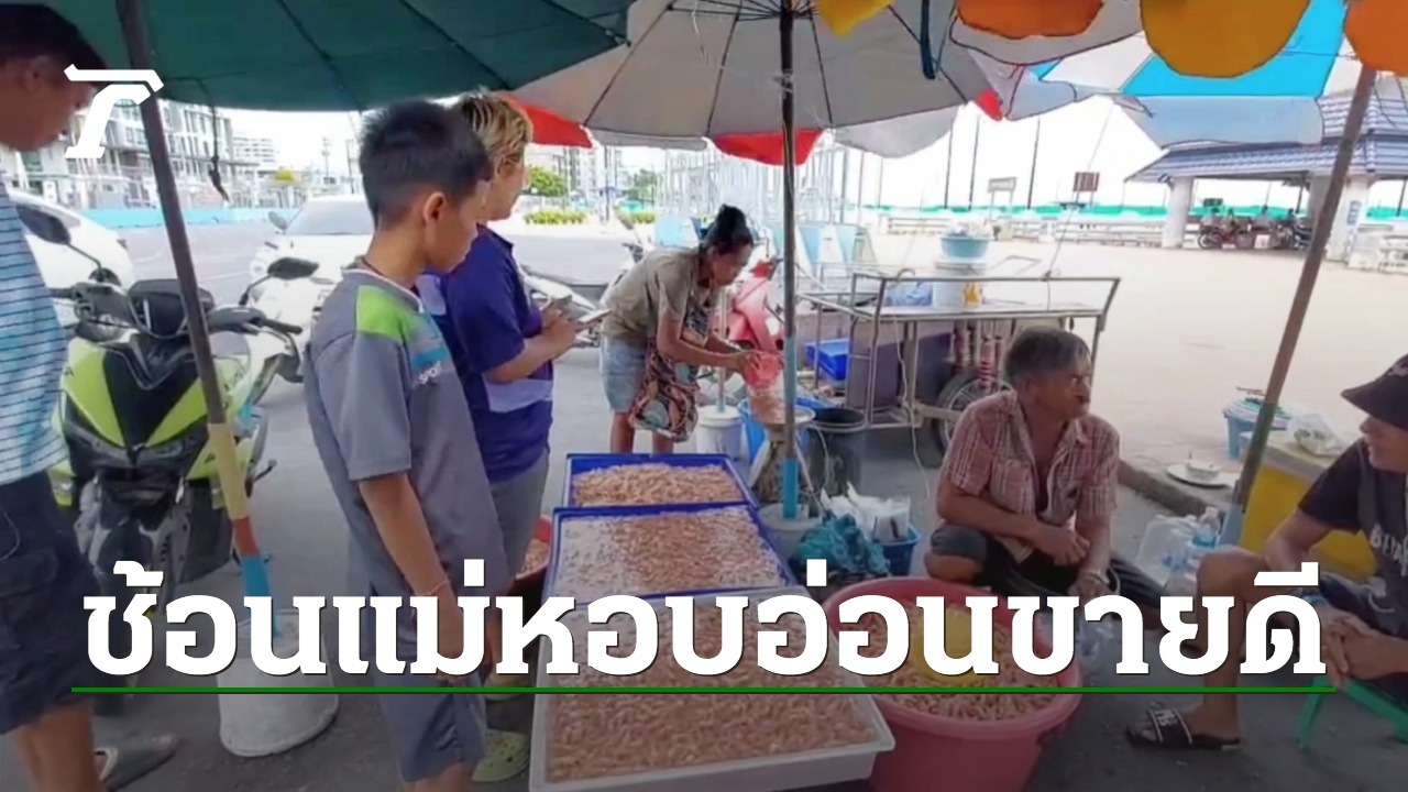 ด้าน น.ส.ณัฐภา สำลีเกตุ อายุ 42 ปี แม่ค้าบริเวณแหลมแท่น เปิดเผยว่า แม่หอบอ่อน หรือกั้งหางแดง ที่ชายหาดบางแสนจะพบไม่บ่อย แต่ปีนี้พบสองครั้งแล้ว รอบนี้ตนมาช้อนตอนเช้าประมาณ 06.00 น. ครั้งนี้ตนช้อนได้ประมาณ 100 กิโลกรัม ราคาขายแบบเป็นกิโลกรัมละ 80-100 บาท ถ้าตายแล้วราคากิโลกรัมละ 50 บาท คนที่ซื้อไปส่วนมากจะนำไปทอดกิน รสชาติจะออกมันๆ อร่อย รสสัมผัสคล้ายกุ้ง กั้ง