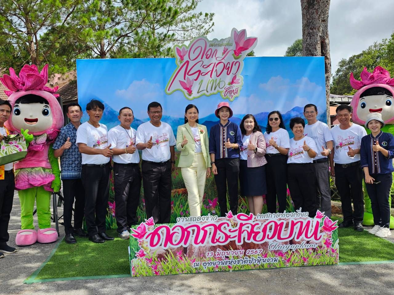 ผู้สื่อข่าวรายงานว่า วานนี้ (13 มิ.ย. 2567) สำนักงานอุทยานแห่งชาติป่าหินงาม อ.เทพสถิต จ.ชัยภูมิ น.ส.อรอาภา โล่ห์วีระ รองผู้ว่าราชการจังหวัดชัยภูมิ พร้อมด้วยนายอำเภอเทพสถิต หัวหน้าอุทยานแห่งชาติป่าหินงาม และหัวหน้าส่วนราชการ ร่วมแถลงถึงการจัดงานเทศกาลดอกกระเจียวบาน ประจำปี 2567 ไฮไลต์งานแถลงครั้งนี้ มีการนำตัวมาสคอต แต่งตัวเป็นต้นดอกกระเจียว 2 คน และสวมหัวดอกกระเจียวเต้นระบำเริงร่าสนุกสนาน ที่ถูกฝนชูช่ออีกครั้งในช่วงหน้าฝนในปีนี้ ใช้เวลาเต้นระบำเริงร่าสนุกสนานประมาณ 5 นาที