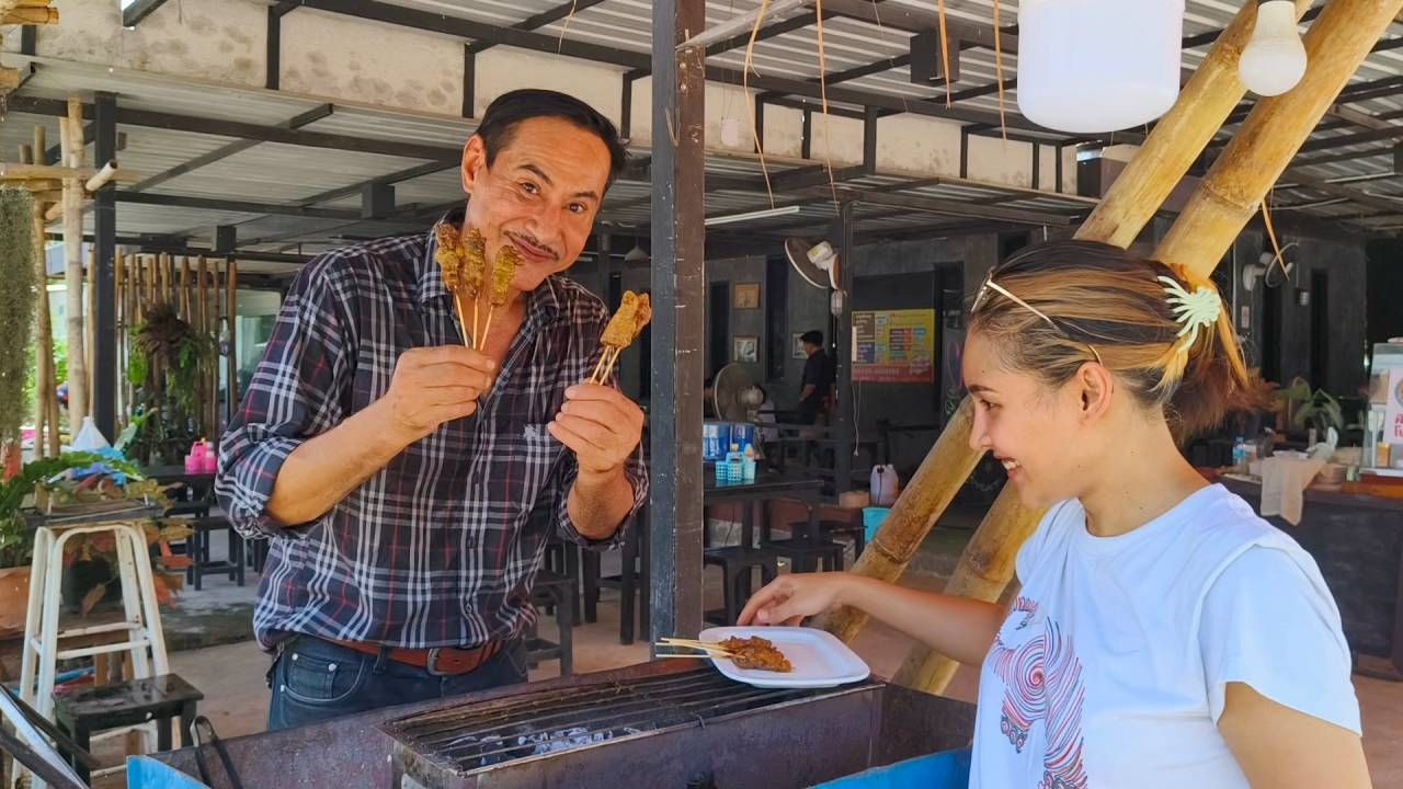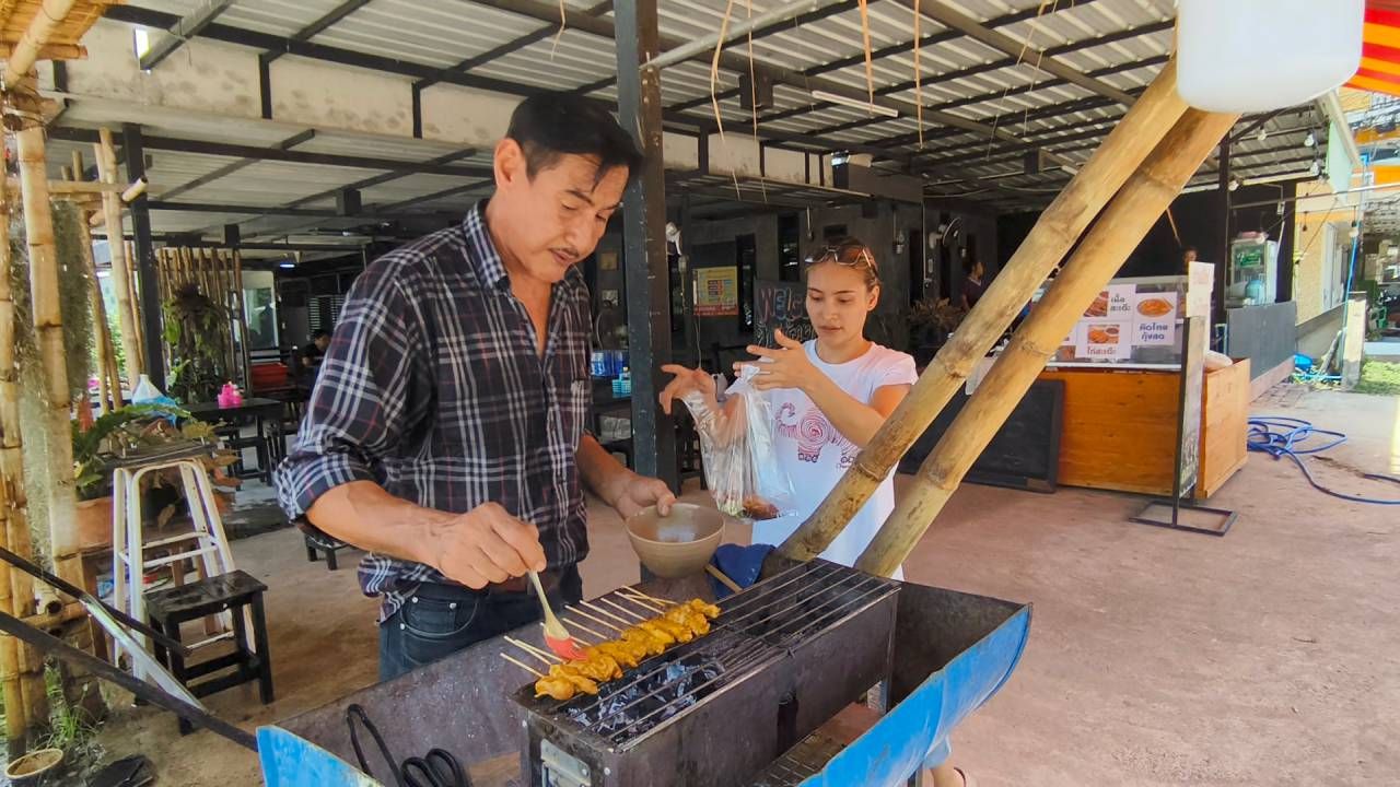 สร้างความฮือฮาให้กับชาวราชบุรี หลังมีคนเห็น "ทองขาว" ดารารุ่นใหญ่ ยืนย่างสะเต๊ะไก่และสะเต๊ะเนื้อ พร้อมผัดไทย ขายริมทาง เผยมาเปิดร้านกับเมีย แถมทำน้ำพริกปลาแดงมีที่เดียวในโลก สูตรจากแม่ อยากกินต้องสั่งจอง เผยงานแสดงไม่มี แต่ชีวิตคู่รักต่างวัยยังหวานชื่นเหมือนเดิม