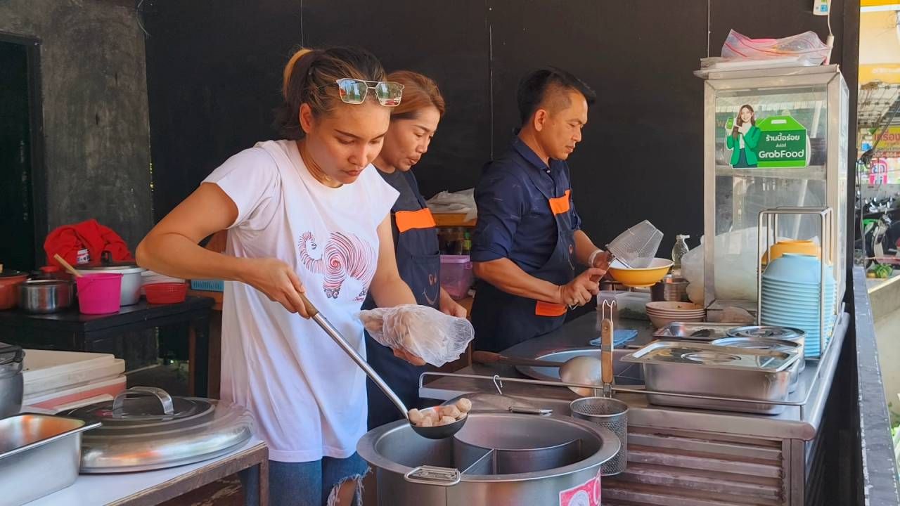 ผู้สื่อข่าวได้เดินทางไปที่ ร้านบอยก๋วยเตี๋ยวหมู-เนื้อรสเด็ด ตั้งอยู่ริมถนนวิทิศวรการ ต.ดอนตะโก อ.เมือง จ.ราชบุรี หลังจากมีเสียงจากชาวบ้านบอกว่า ทองขาว ภัทรโชคชัย ดารานักแสดงชายรุ่นใหญ่ มาเปิดร้านขายผัดไทย สะเต๊ะไก่-เนื้อ อยู่หน้าร้านก๋วยเตี๋ยว เมื่อไปถึงได้พบ พี่ทองขาว กำลังยืนย่างสะเต๊ะไก่และสะเต๊ะเนื้อ พร้อมเดินเสิร์ฟอาหารให้กับลูกค้าอย่างตั้งอกตั้งใจ ส่วน น้องมิล กนกวรรณ ภรรยาสาวสวยที่อายุห่างกัน 32 ปี กำลังผัดผัดไทยสูตรโบราณ และก๋วยเตี๋ยว เพื่อเสิร์ฟให้กับลูกค้าด้วยอาการยิ้มแย้ม โดยบรรยากาศภายในร้านเป็นแบบสบายๆ ชิลๆ มีทั้งโซนด้านนอกและห้องแอร์ไว้บริการลูกค้า