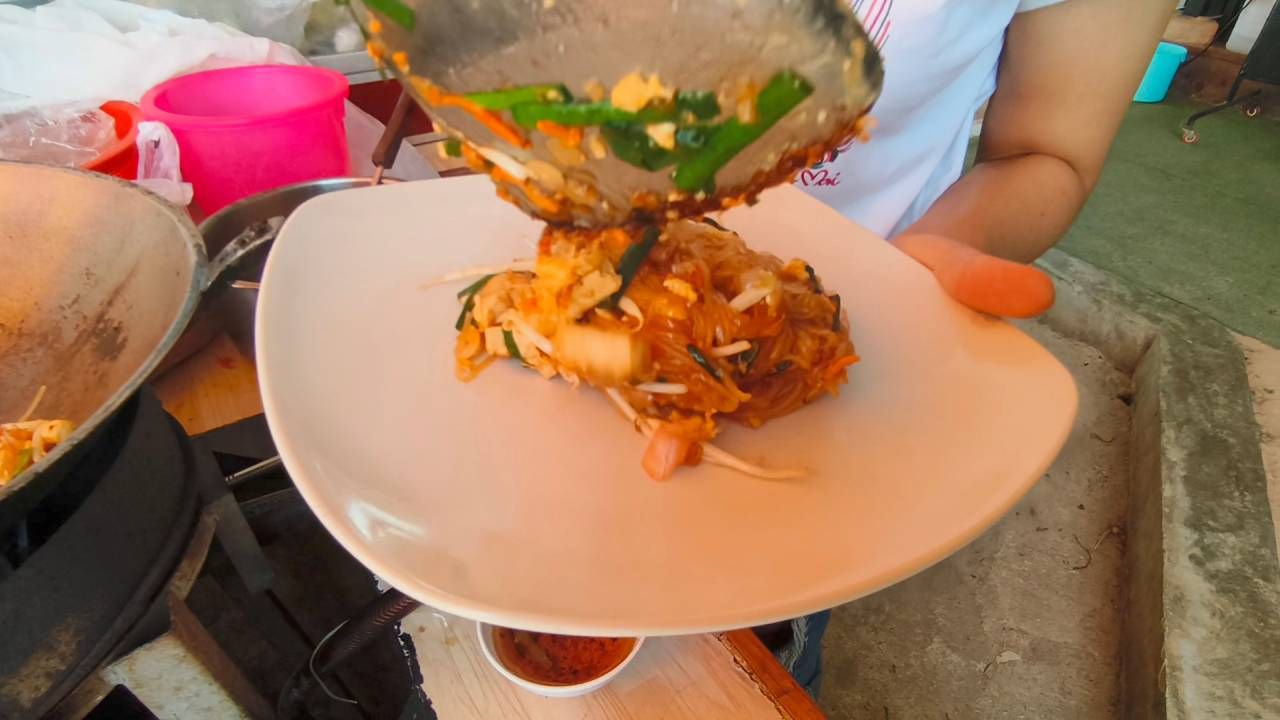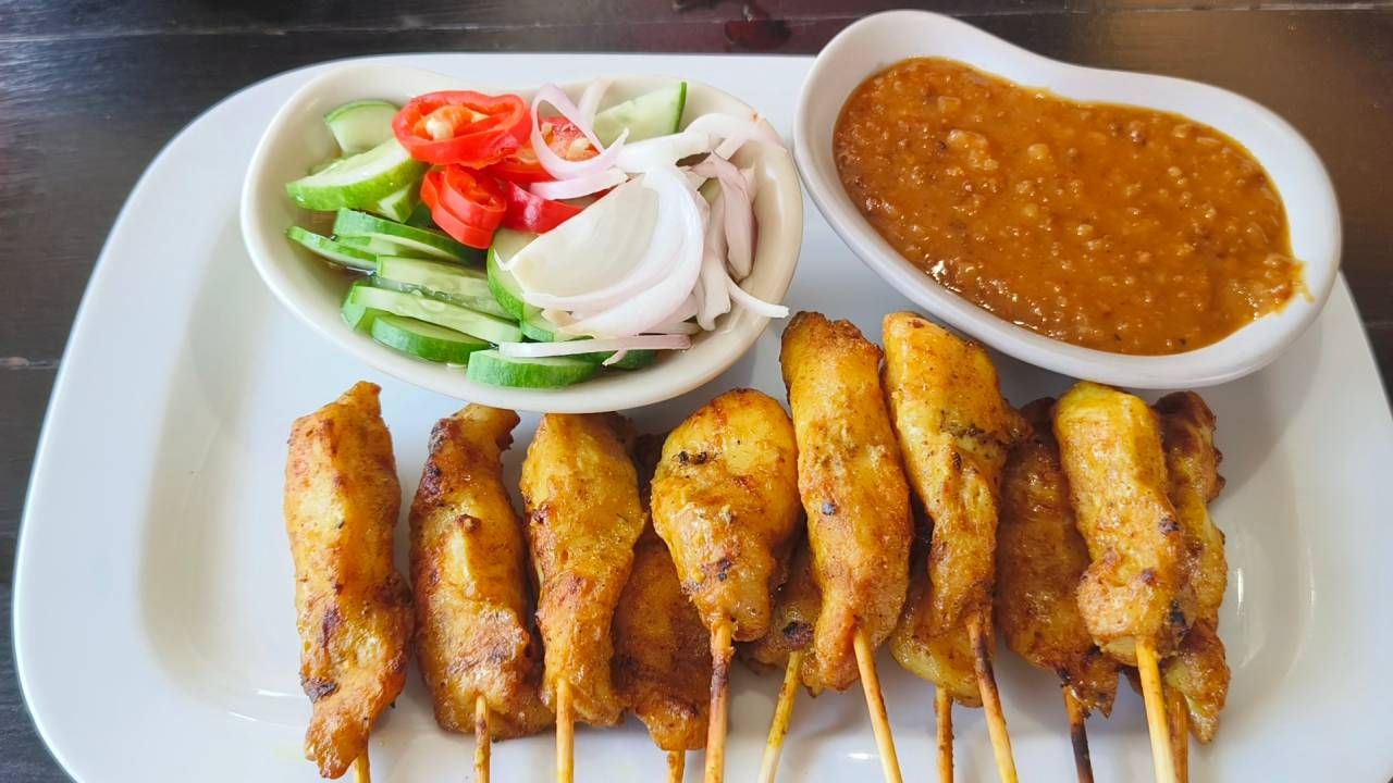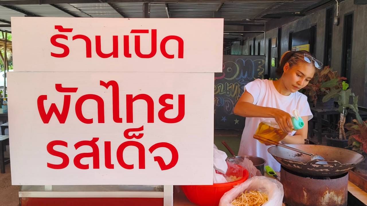 "ร้านนี้เดิมทีขายแต่ก๋วยเตี๋ยวอย่างเดียว โดยเป็นร้านของเพื่อนเป็นคนทำ แต่เพื่อนเห็นว่าตนทำสะเต๊ะไก่และเนื้อมีรสชาติอร่อย และทำขายเพียงแต่ในสวนอย่างเดียว จึงชักชวนมาขายด้วยกันที่ร้านแห่งนี้ โดยตัวเองก็คิดว่า น้องมิล ภรรยา ก็มีฝีมือในการทำผัดไทย จึงมาเปิดร้านอยู่ที่นี่ ทำมานานได้ประมาณ 2 เดือนแล้ว ส่วนเมนูที่ลูกค้าต้องสั่งทานคือ สะเต๊ะไก่และสะเต๊ะเนื้อ ถือเป็นร้านเดียวในจังหวัดที่มีเมนูนี้ โดยเป็นสูตรที่ พี่ทองขาว คิดค้นและปรับให้ถูกปากกับลูกค้า โดยต้องเน้นจากการหมักเนื้อไก่และเนื้อให้จนนุ่ม ใช้เครื่องเทศคลุกเคล้าให้มีความหอม ส่วนน้ำจิ้มกับอาจาดของเราจะใช้สูตรเข้มข้นไม่หวงเครื่อง" พี่ทองขาว กล่าว