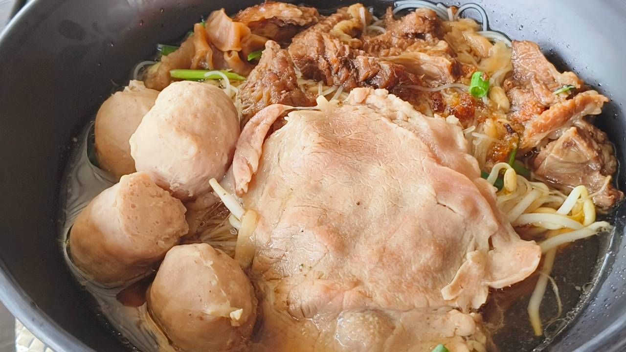 สำหรับเมนูที่ขายในร้านมีทั้งเมนูก๋วยเตี๋ยวหมูและเนื้อ ซึ่งจะแยกหม้อในการปรุงก๋วยเตี๋ยวหมูและเนื้อ ส่วนลูกชิ้นเป็นลูกชิ้นที่ทางร้านทำเองไม่ใส่แป้ง ในราคา 35 บาท, ผัดไทยสูตรโบราณ 40 บาท, ผัดไทยกุ้งสด 60 บาท และเมนูสุดเด็ดที่ลูกค้าต้องสั่งก่อนไม่งั้นไม่ได้กินคือ สะเต๊ะไก่และสะเต๊ะเนื้อ ซึ่งขายอยู่ในราคาชุดละ 120 บาท (15 ไม้) สำหรับสะเต๊ะไก่ ส่วนสะเต๊ะเนื้อขายอยู่ในราคาชุดละ 150 บาท (15 ไม้)