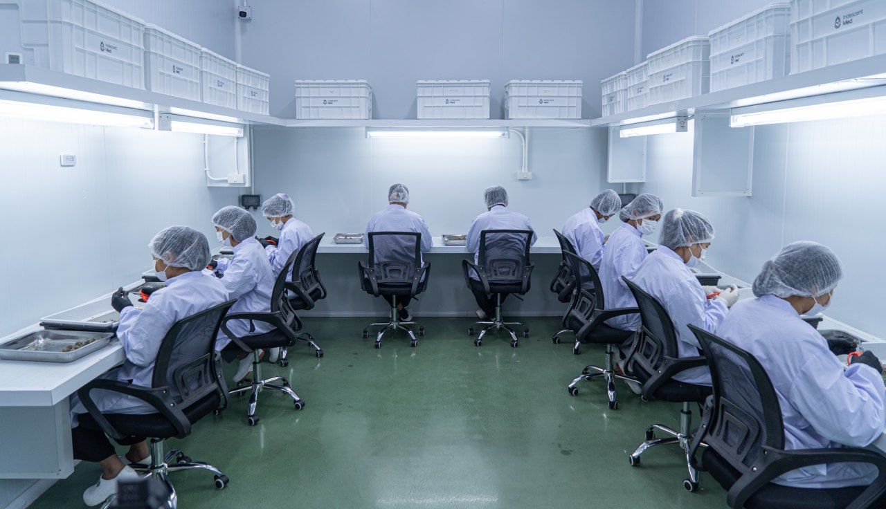 โดยโรงงานของ อิริเดซเซ็นท์ เมดแบ่งเป็น 3 ส่วน ได้แก่โรงงานสำหรับปลูกเพื่อผลิตช่อดอกแห้งเพื่อการแพทย์ (Medical grade Cannabis) แบบระบบปิดทั้งดอก CBD สูง และ THC สูง มี ซึ่งได้รับมาตรฐาน Global GACP CUMCS จาก Control Union มีกำลังการผลิต 1,000 กิโลกรัมต่อปีเพื่อส่งออกต่างประเทศหลัก ไปให้แพทย์จ่ายในคลินิกทั้งภายใต้แบรนด์ Iridescent Med. และส่งแบบ OEM อีกด้วย