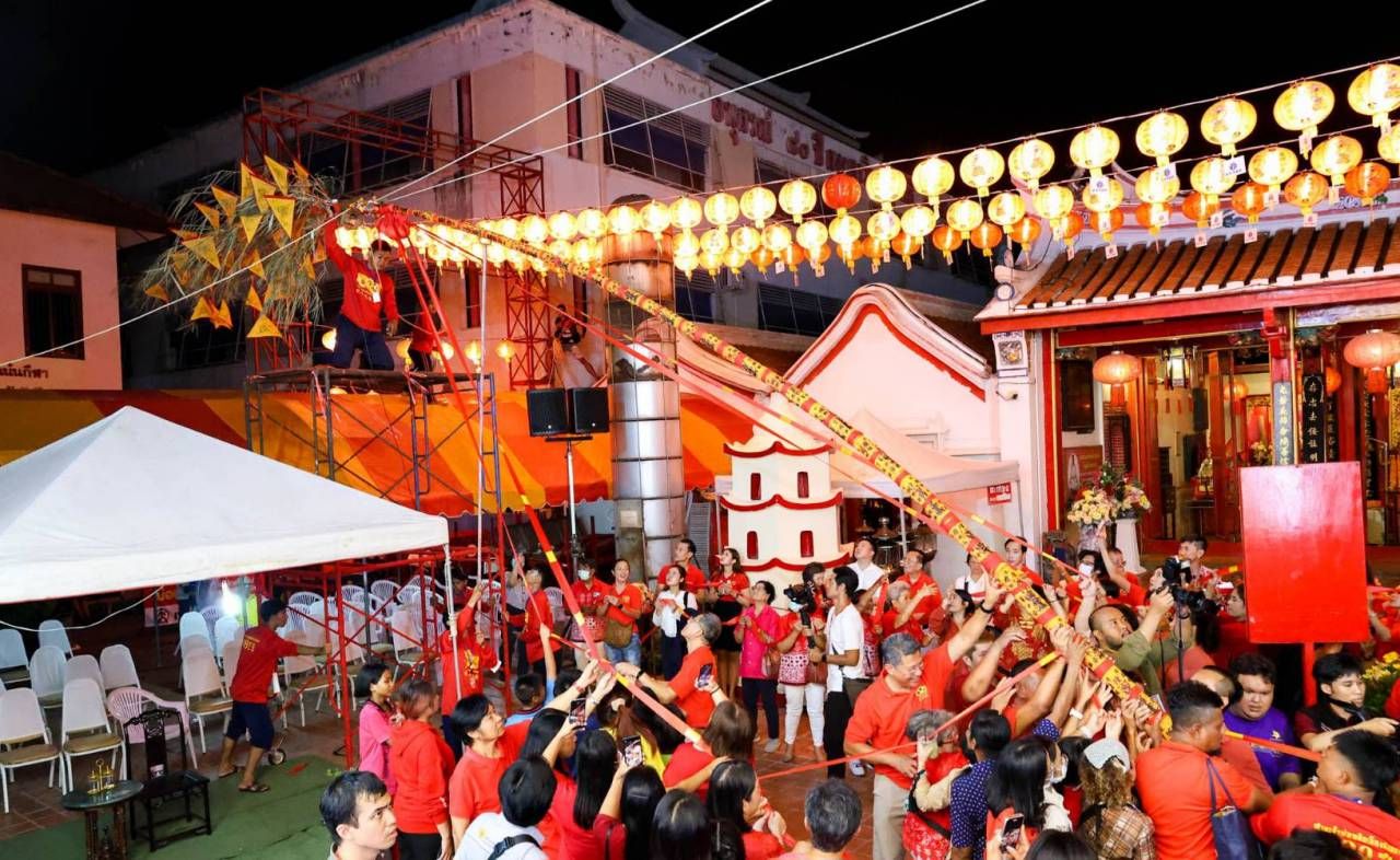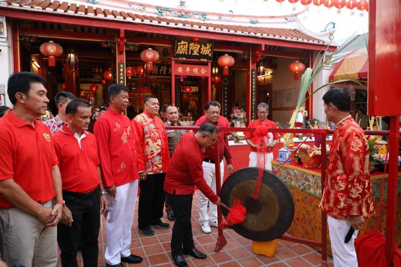 เมื่อช่วงค่ำวานนี้ (27 มิ.ย. 67) ผู้สื่อข่าวรายงานว่า ที่ศาลเจ้าพ่อหลักเมืองสงขลา ถนนนางงาม ตำบลบ่อยาง อำเภอเมือง จังหวัดสงขลา นายเศวต เพชรนุ้ย รองผู้ว่าราชการจังหวัดสงขลา เป็นประธานในพิธีเปิดงานสมโภชศาลเจ้าพ่อหลักเมืองสงขลา ครบรอบ 182 ปี ซึ่งจัดขึ้นระหว่างวันที่ 27 มิถุนายน-3 กรกฎาคม 2567 เพื่อสืบสานประเพณีและวัฒนธรรมอันดีงามของชาวไทยเชื้อสายจีนให้คงอยู่ พร้อมกระตุ้นเศรษฐกิจและการท่องเที่ยวในพื้นที่ โดยมีนายสุรินทร์ สุริยะวงศ์ ปลัดจังหวัดสงขลา นายวันชัย ปริญญาศิริ นายกเทศมนตรีนครสงขลา นายสักกพันธุ์ อนันต์พงค์ ประธานศาลเจ้าพ่อหลักเมือง พร้อมด้วยนายกสมาคมฮกเกี้ยนสงขลา ส่วนราชการ นายอำเภอ ประชาชนชาวไทยเชื้อสายจีนและนักท่องเที่ยวเข้าร่วม ณ ศาลเจ้าพ่อหลักเมืองสงขลา ถนนนางงาม ตำบลบ่อยาง อำเภอเมือง จังหวัดสงขลา