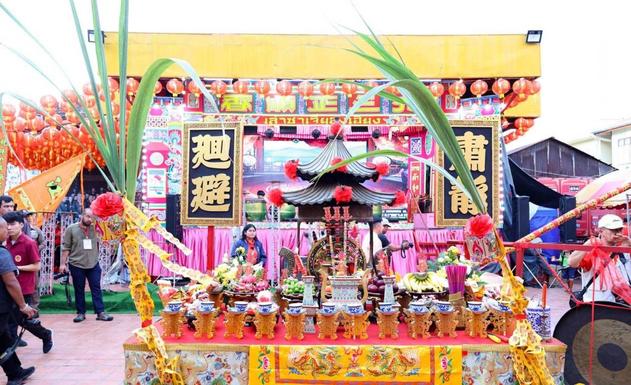 บรรยากาศในบริเวณงาน มีการตกแต่งและประดับประดาด้วยโคมไฟจีนสีแดง รวมทั้งยังมีกิจกรรมที่หลากหลาย อาทิ พิธียกเสาโกเต้ง พิธีเชิญองค์พระประทับเกี้ยว พิธีแห่พระรอบเมือง พิธีเวียนเทียนสะเดาะเคราะห์ พิธีเซ่นไหว้ในวันประสูติเจ้าพ่อหลักเมือง กิจกรรม “อิ่มท้องอิ่มบุญ 9 ห้อง 9 บาท ปีที่ 10” ณ ลานเปิดฟ้า ศาลเจ้ากวนอู การจำหน่ายสินค้าพื้นเมืองตลอดถนนนางงาม การแสดงสิงโต เชิดมังกร 5 สี 5 มงคล และการแสดงงิ้วในทุกค่ำคืน