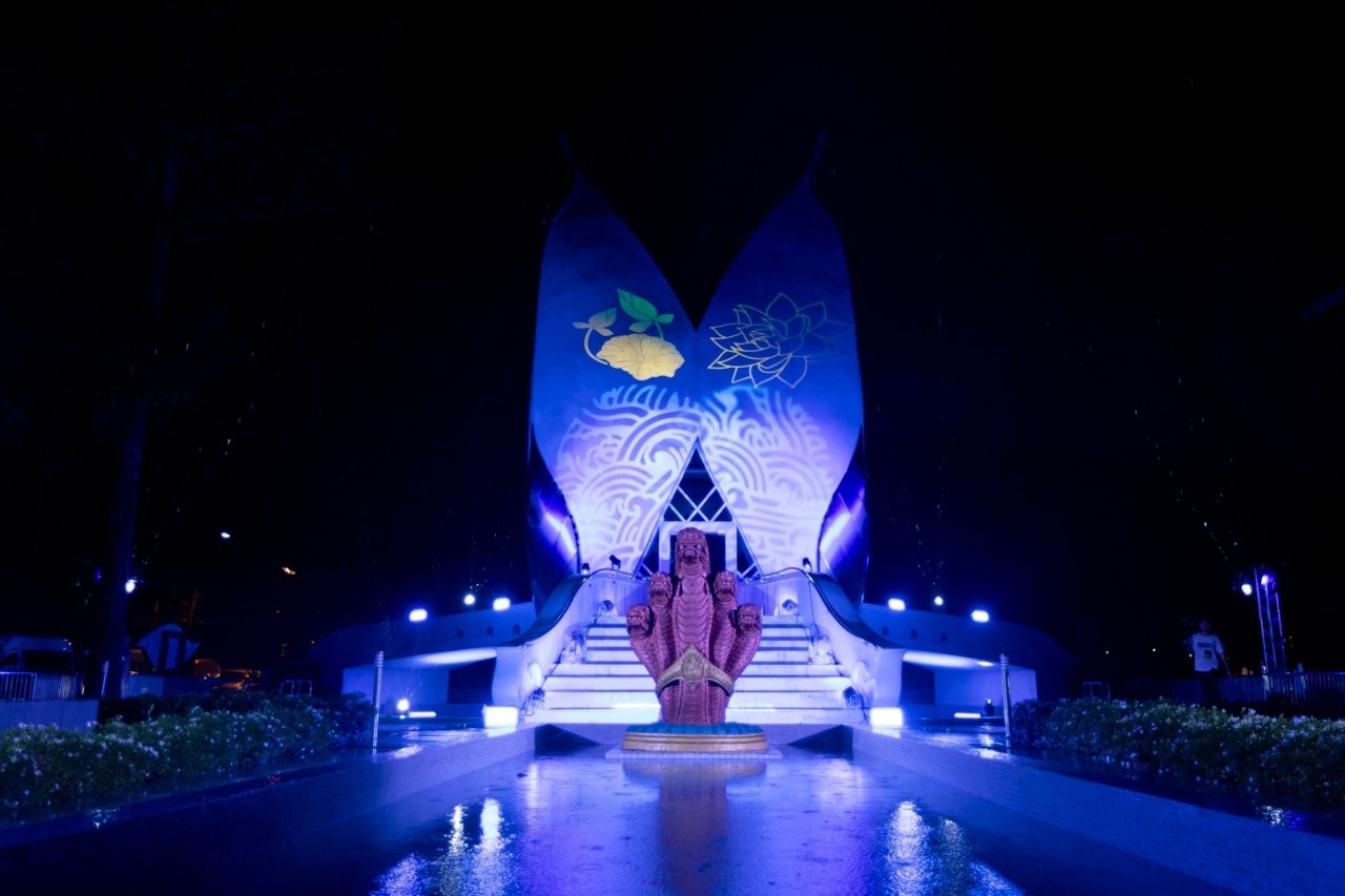 จุดที่ 1 แสง สี ศิลป์ ราชธานี การจัดการแสดง Mapping เทคโนโลยีแนวใหม่ สไตล์ Modern Art บอกเรื่องราวความเจริญรุ่งเรืองของจังหวัดอุบลราชธานี
