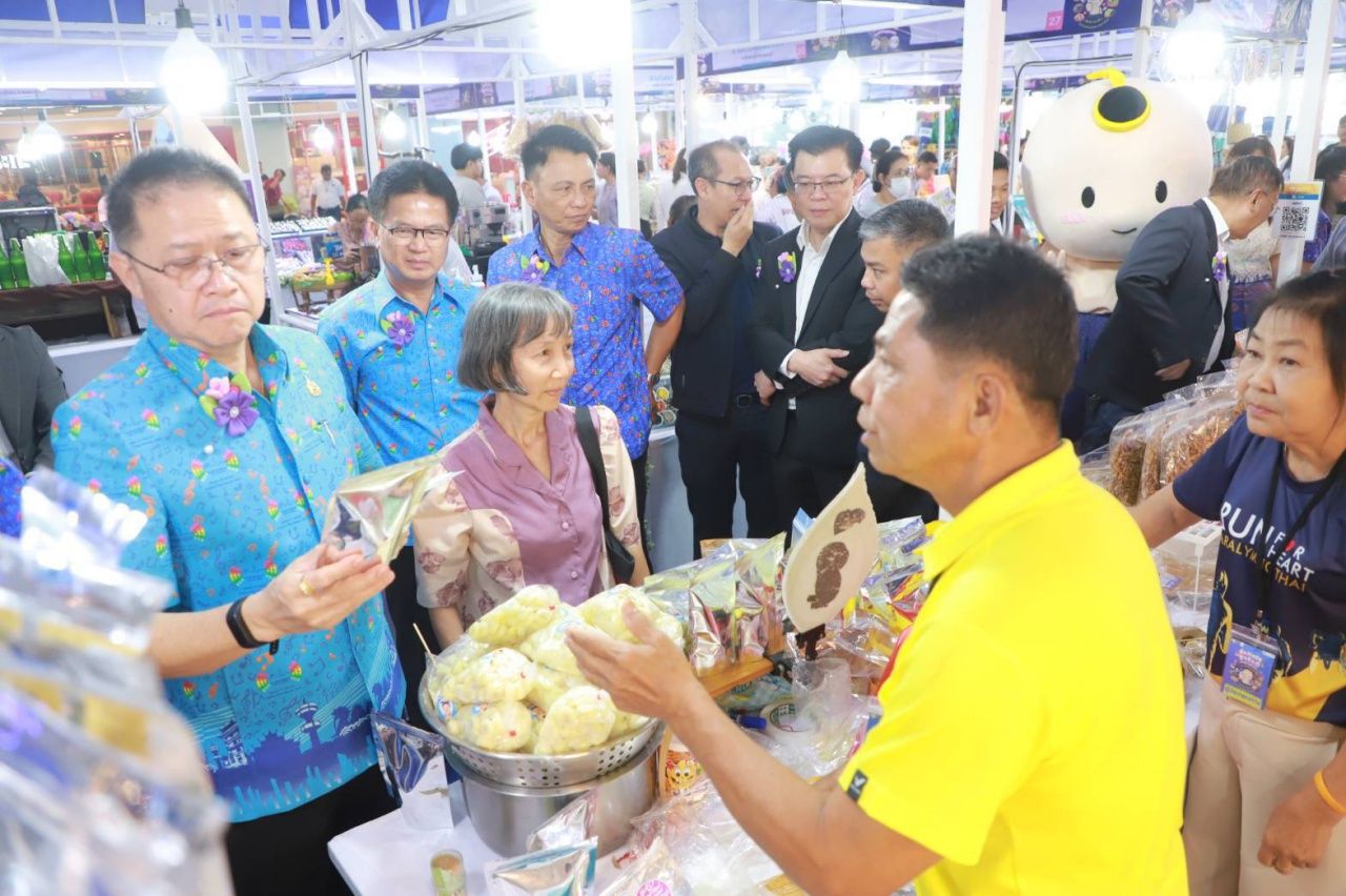 ภายในงานได้มีการจัดแสดงและจำหน่ายสินค้า โดยมีผู้ประกอบการสินค้าที่มีคุณภาพ ภายใต้การส่งเสริมและประชาสัมพันธ์ผ่านแบรนด์ “น้องเหน่อ” ซึ่งเป็นสัญลักษณ์ของจังหวัดสุพรรณบุรี อาทิ ผู้ประกอบการ SMEs Start Up ของจังหวัดสุพรรณบุรี กลุ่มเกษตรกร กลุ่มวิสาหกิจชุมชน กลุ่ม OTOP และกลุ่มเครือข่ายธุรกิจบิสคลับ เข้าร่วมแสดงและจำหน่ายสินค้าทั้งสิ้นรวม 50 คูหา