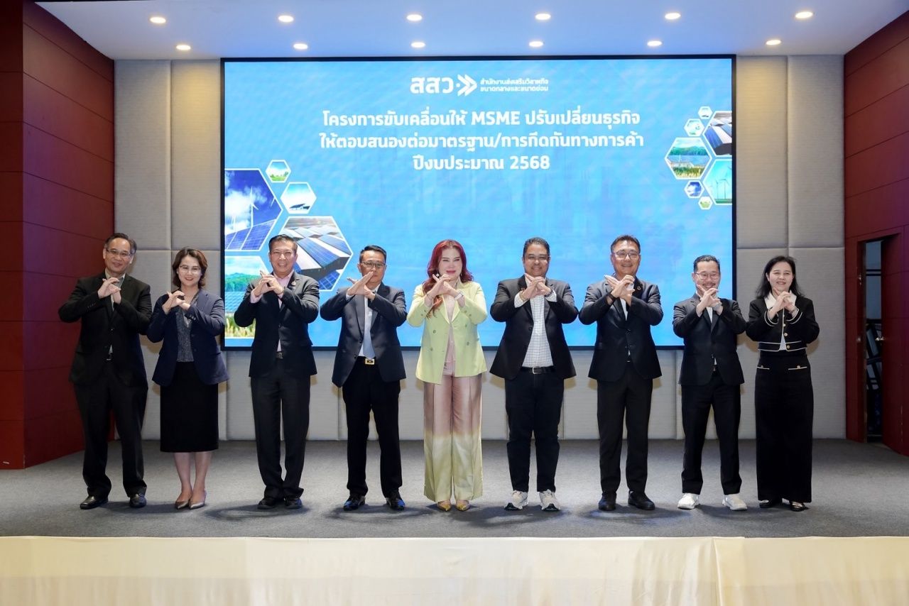 สสว. ร่วมกับ มหาวิทยาลัยศิลปากร และ สถาบันเทคโนโลยีพระจอมเกล้าเจ้าคุณทหารลาดกระบัง แถลงความสำเร็จการดำเนินงานโครงการขับเคลื่อนให้ MSME ปรับเปลี่ยนธุรกิจให้ตอบสนองต่อมาตรฐาน/การกีดกันทางการค้า ปีงบประมาณ 2568