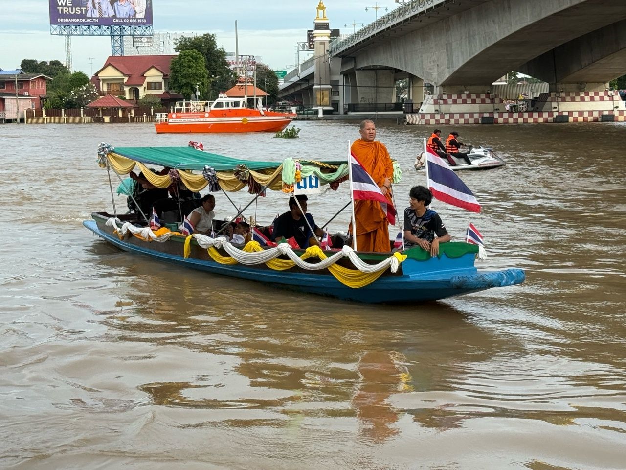 เมื่อเวลา 08.30 น. วันที่ 8 ตุลาคม 2568 ที่ท่าน้ำปากเกร็ด ถนนแจ้งวัฒนะ อ.ปากเกร็ด จ.นนทบุรี นายอภิชัย อร่ามศรี รองผู้ว่าราชการจังหวัดนนทบุรี เป็นประธานในงานตักบาตรพระสงฆ์ทางเรือหรือตักบาตรเทโว ที่เทศบาลนครปากเกร็ด ได้จัดขึ้นเป็นประจำทุกปี พร้อมด้วยนายวิชัย บรรดาศักดิ์ นายกเทศมนตรี เทศบาลนครปากเกร็ด เพื่อสืบสานประเพณีท้องถิ่นของชาวไทยเชื้อสายมอญ ริมสองฝั่งแม่น้ำเจ้าพระยา ในช่วงเทศกาลวันออกพรรษา ที่สืบทอดกันมาอย่างยาวนาน