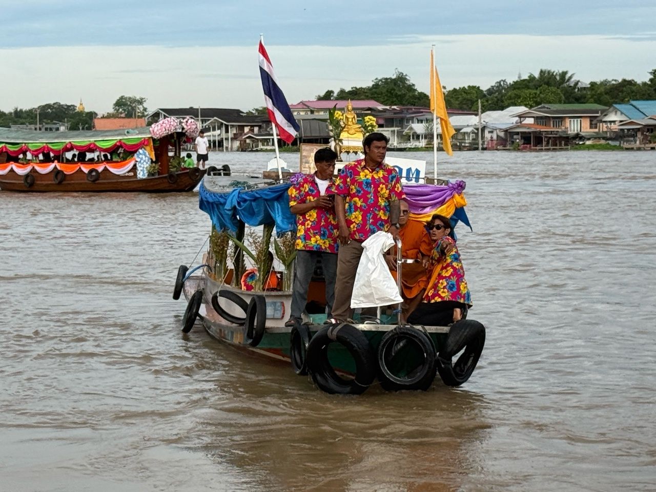 โดยเรือจะล่องมาตามลำน้ำจนมาถึงท่าน้ำปากเกร็ด เป็นจุดสุดท้าย ซึ่งมีเรือเข้าร่วมประกวดจำนวน 33 ลำ จากชุมชนในอ.ปากเกร็ด โดยเรือแต่ละลำมีการนำดอกไม้มาตกแต่งเรือ ประดับประดาอย่างสวยงาม และมีการร้องรำเพลงพื้นบ้านกันบนเรืออย่างคึกครื้นสนุกสนาน สร้างความตื่นตากับผู้ที่มาร่วมทำบุญ