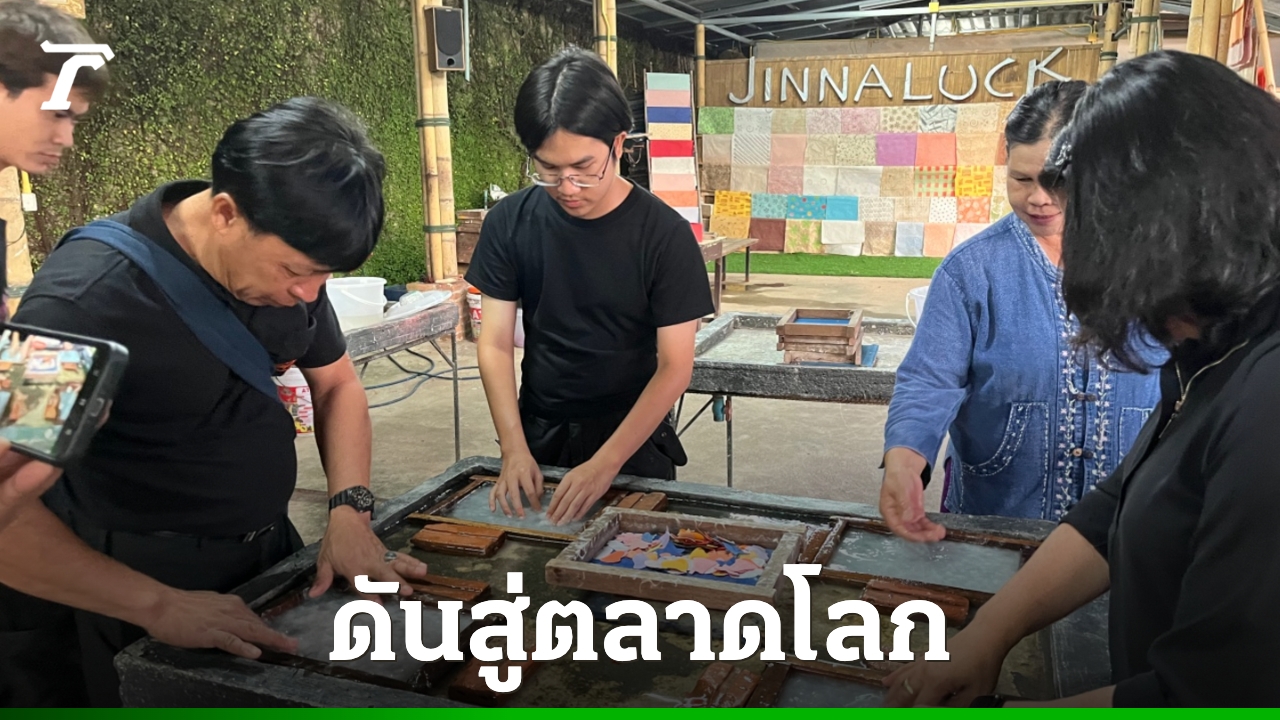 วิสาหกิจชุมชนกระดาษใบสับปะรด ป่าซางวิวัฒน์ ต.นางแล อ.เมือง จ.เชียงราย โมเดล SDGs เชียงราย ตัวอย่างเศรษฐกิจหมุนเวียนที่สร้างมูลค่าเพิ่มจากวัสดุเหลือทิ้งทางการเกษตร แปรรูปใบสับปะรดเหลือใช้เป็นกระดาษธรรมชาติสีและลวดลายสวยงาม ผลิตเป็นสินค้าเชิงสร้างสรรค์ เช่น ถุงกระดาษ สมุดโน้ต ที่คั่นหนังสือ รองเท้า จานรองแก้ว และของที่ระลึกที่ใช้งานได้จริง สะท้อนภูมิปัญญาท้องถิ่นและช่วยสร้างรายได้ให้ชุมชนอย่างยั่งยืน