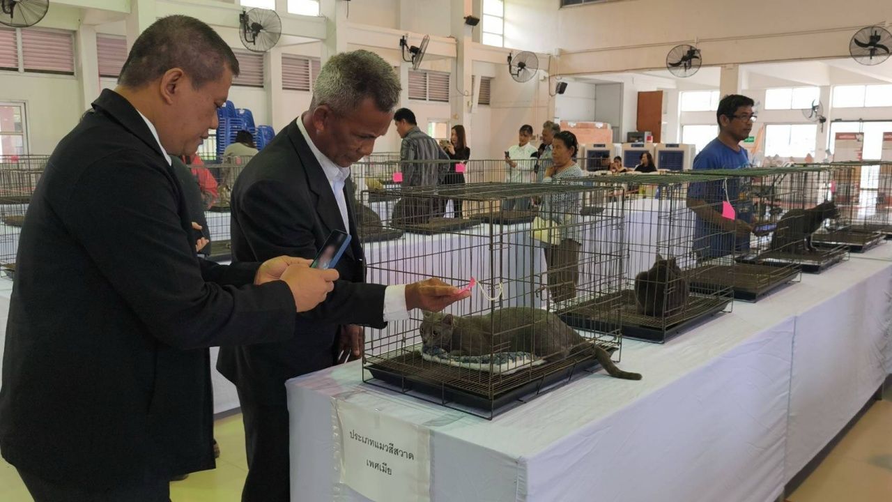 วันที่ 5 พ.ย. 68 ที่หอประชุมที่ว่าการอำเภอพิมาย จังหวัดนครราชสีมา นายศิวะเสก สินโทรัมย์ นายอำเภอพิมาย พร้อมด้วย นายพศวีร์ สมใจ ปศุสัตว์จังหวัดนครราชสีมา และนายนิกร โสมกลาง สส.นครราชสีมา เขต 8 ได้ร่วมกับคณะกรรมการจัดงานเทศกาลเที่ยวพิมาย ประจำปี 2568 จัดประกวดแมวโคราช หรือ แมวไทยโคราช หรือ แมวสีสวาด ซึ่งมีถิ่นกำเนิดอยู่ที่อำเภอพิมาย จังหวัดนครราชสีมา โดยแมวโคราช เดิมโบราณเรียกว่า “แมวมาเลศ” หรือ “แมวดอกเลา” เพราะมีสีคล้ายดอกเลา ศีรษะเมื่อดูจากด้านหน้าจะเป็นรูปหัวใจ หน้าผากใหญ่และแบน โดยแมวตัวผู้หน้าผากจะมีรอยหยัก ซึ่งทำให้เห็นเป็นรูปหัวใจเด่นชัด มีกรามและคางที่แข็งแรง หูตั้ง หูใหญ่เด่นอยู่บนศีรษะ เป็นแมวขนาดกลาง ขนสั้น สีสวาด (Silver blue) ตั้งแต่เกิดจนตาย ถ้ามีสีอื่นปะปนจะไม่ใช่พันธุ์แท้ นัยน์ตาใหญ่สีเขียวสดใสเป็นประกาย