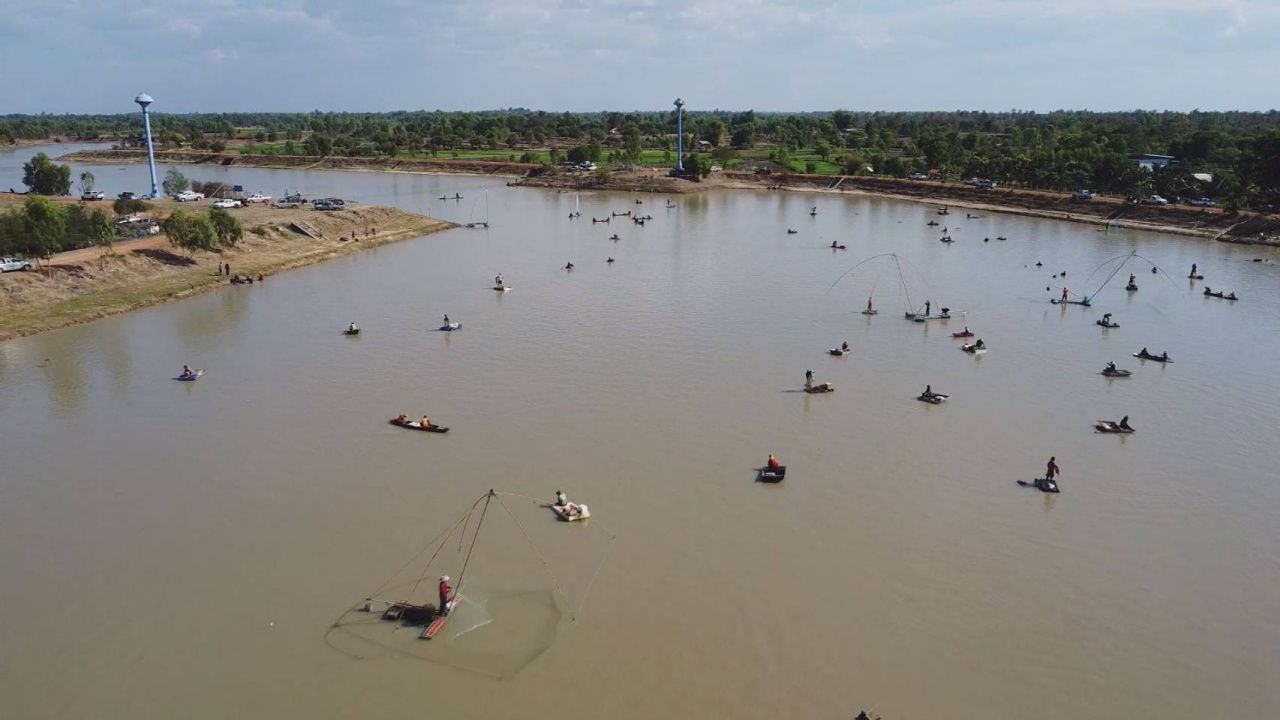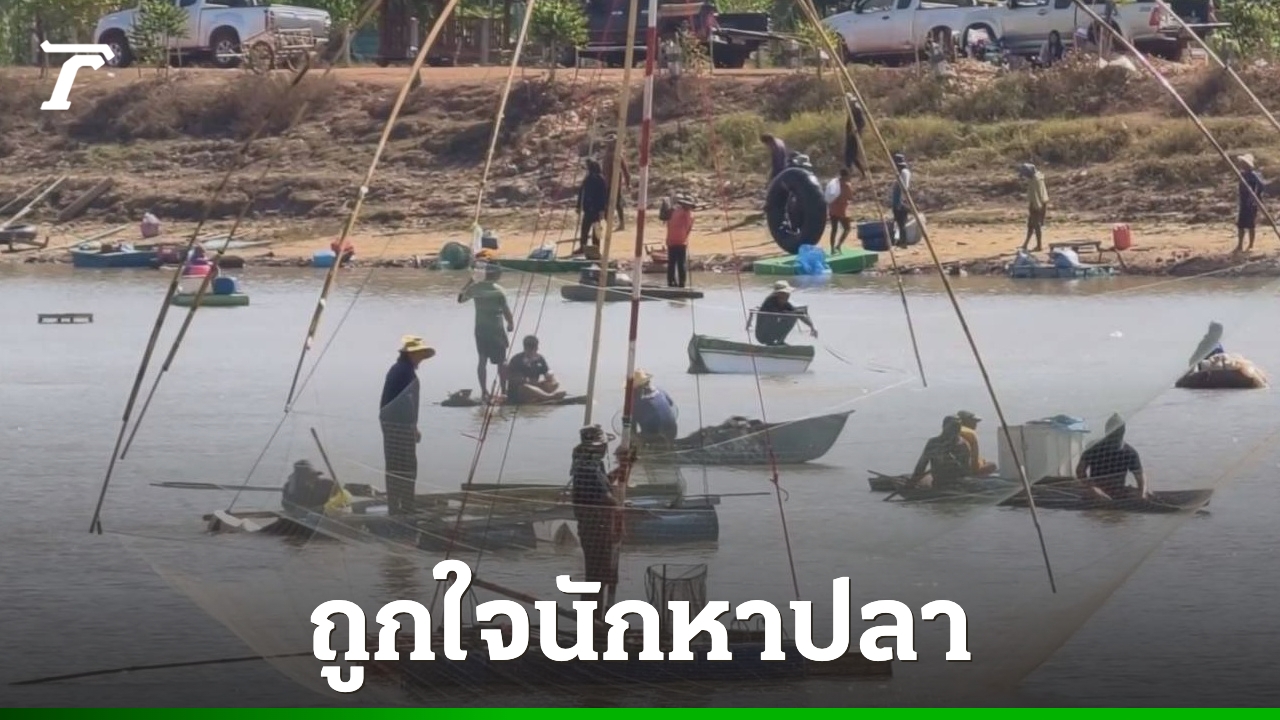 สุดคึกคัก เซียนแหนับร้อยแห่ซื้อบัตรลงแขก "จับปลา" แบบวิถีพื้นบ้าน บริเวณหนองดินดำ พร้อมสร้างรายได้สู่ชุมชน