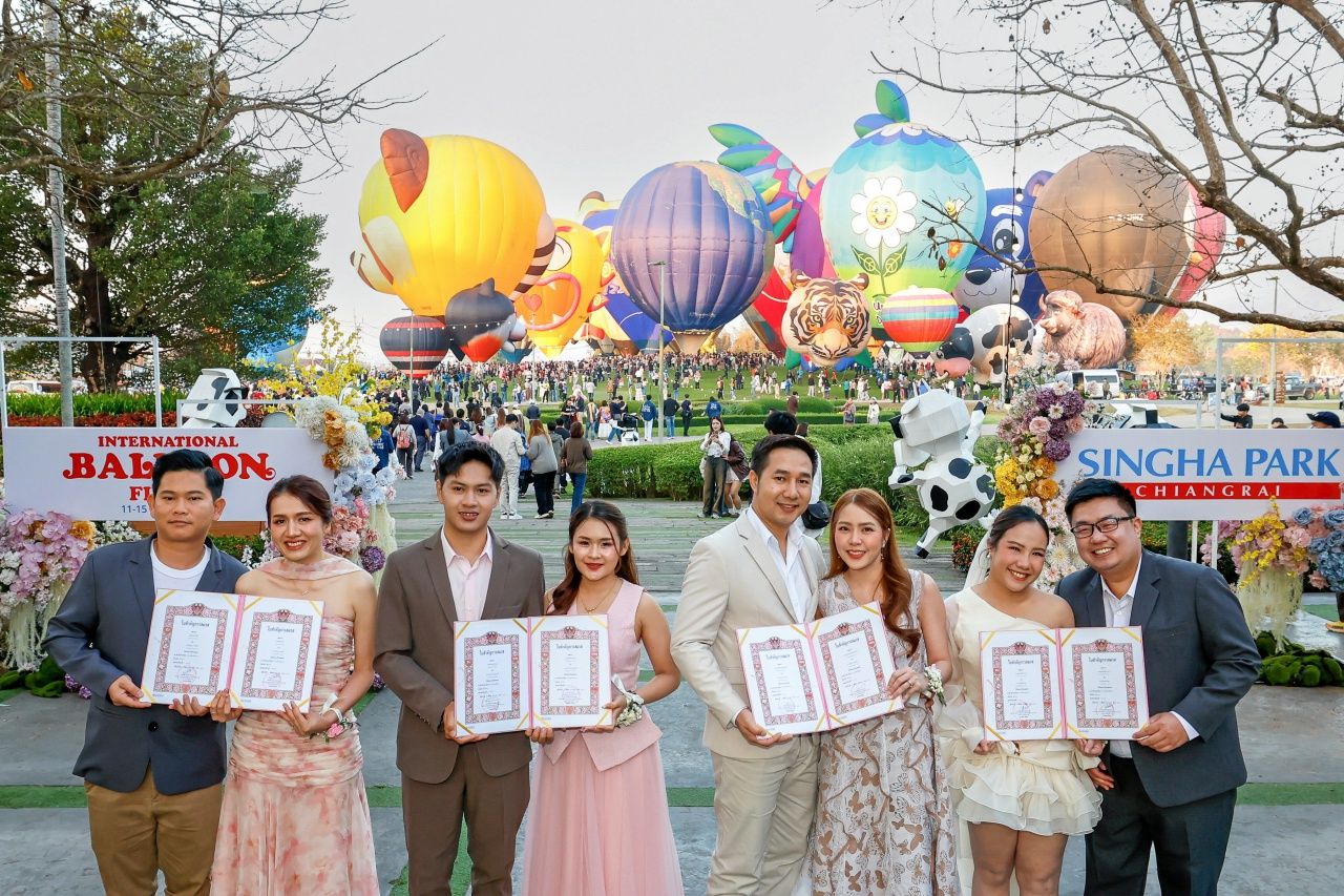 โดยหนึ่งในไฮไลต์ของงาน Singha Park International Balloon Fiesta 2026 คือกิจกรรมเฉลิมฉลองความรักให้กับคู่รักที่มาร่วมพิธีจดทะเบียนสมรส เพื่อเริ่มต้นชีวิตคู่ โดยการขึ้นบอลลูนชมวิวทิวทัศน์ของจังหวัดเชียงราย และบอกรักกันบนฟ้า