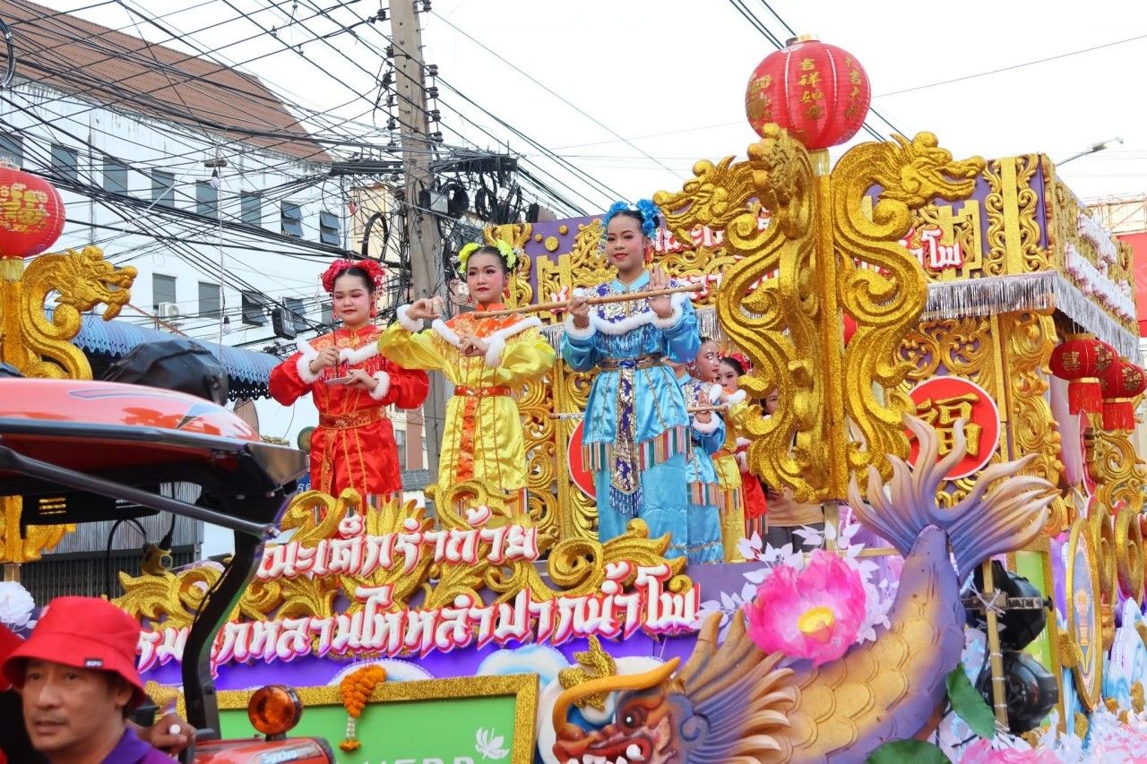 ทั้งนี้ ยังเป็นขบวนแห่ที่ยาวที่สุดในประเทศไทย ทั้งขบวนเทิดพระเกียรติ ขบวนนางฟ้าจากโรงเรียนและมหาวิทยาลัยต่าง ๆ การแสดงคณะมังกรทอง การแสดงสิงโต 5 ชาติพันธุ์ รำถ้วยไหหลำ เอ็งกอ-พะบู๊ ขบวนองค์สมมติเจ้าแม่กวนอิม ที่ได้ นางสาวศกุนตลา แพรนาม หรือ น้องผักบุ้ง อายุ 16 ปี ประทับบนแท่นดอกบัว ที่นักท่องเที่ยวรอชมกันอยู่ และลูกศิษย์ กิมท้ง-เง็กนึ่ง และขบวนมังกรทอง