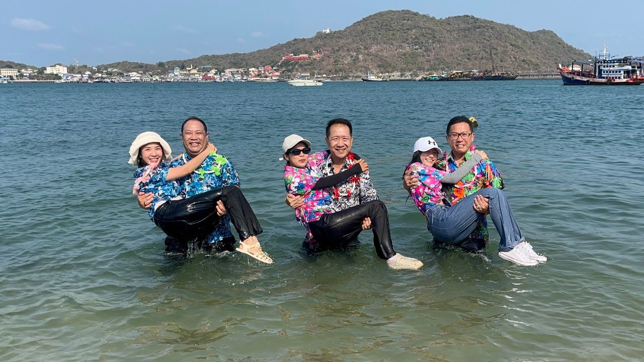 นักท่องเที่ยวชาวไทย-ต่างชาติ แห่ร่วมงาน "สงกรานต์อุ้มสาวลงน้ำ" เกาะขามใหญ่ อำเภอเกาะสีชัง เพื่อสืบสานประเพณีเก่าแก่ของชุมชนท้องถิ่น