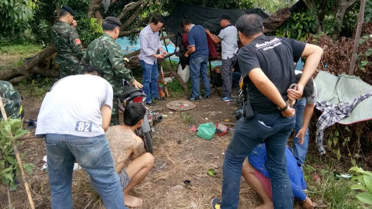 เมื่อเวลา 07.00 น. วันที่ 13 ก.ค.60 พ.ต.ท.พิสันต์ ชัยสุริยะ รองผกก.สส.สภ.ป่าซาง จ.ลำพูน นำกำลังสนธิร่วมกับร.ท.นันท์พิพัชญ์ คำวงค์ปิน รอง ผบ.ร้อย.รส.ที่ 2 (ร.7 พัน.1) กองกำลังรักษาความสงบเรียบร้อย จ.ลำพูน ร่วมกันปิดล้อมตรวจค้นแหล่งมั่วสุมเสพยาเสพติดในกระท่อมหลังบ้านซึ่งเป็นสวนลำไยบ้านห้วยไฟ ต.นครเจดีย์ อ.ป่าซาง จ.ลำพูน ภายหลังสืบทราบว่ากลุ่มวัยรุ่นได้นัดรวมตัวกันเสพยาบ้าและยาไอซ์กันมานาน และเมื่อคืนที่ผ่านมาพบกลุ่มวัยรุ่นได้ขี่รถ จยย.เข้าออกกันตลอดทั้งคืนจึงเชื่อว่ามีการมั่วสุมเสพยาเสพติดกันจริง เจ้าหน้าที่จึงนำกำลังเข้าปิดล้อมตรวจค้นดังกล่าว