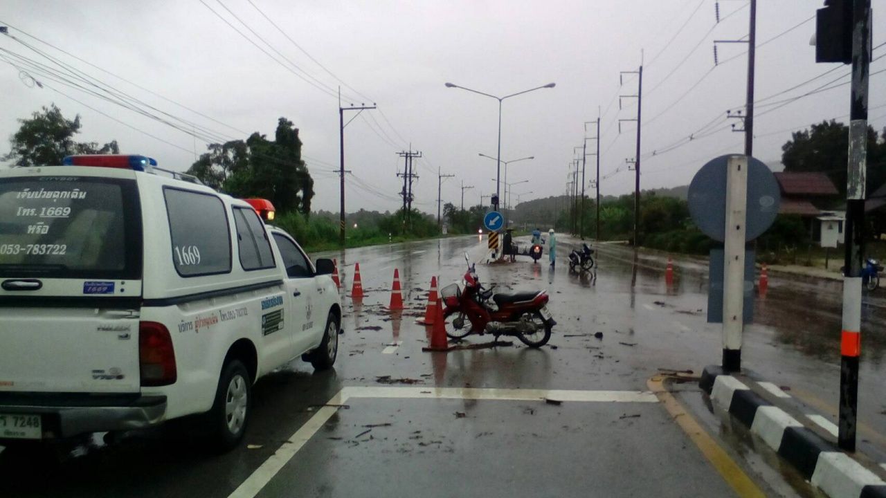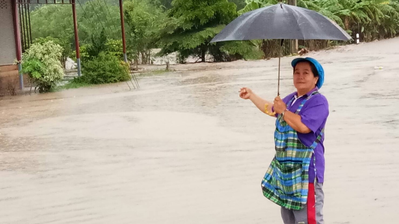ที่ จ.เชียงราย วันที่ 14 ก.ค. ผู้สื่อข่าวรายงานว่าเกิดฝนตกหนักเกือบทั้งคืนในพื้นที่อ.เชียงของ จนเกิดน้ำไหลบ่าจากหลายทิศทางท่วมถนน 1020 บริเวณ หมู่บ้านม่วงชุม หมู่บ้านตองเก้า ต.ครึ่ง ในช่วงคืนที่ผ่านมา ทำให้วิ่งได้เพียงเลนเดียว และระบายน้ำหมดในช่วงเช้า แต่ยังมีน้ำท่วมขังบางส่วนในพื้นที่นา ต.ครึ่ง ต.ห้วยซ้อ ซึ่งอยู่ในช่วงการปักดำของชาวนากว่า 300 ไร่ และมีท่วมบางจุดใน ต.เวียง บริเวณโรงเรียนเชียงของวิทยาคม เนื่องจากหน้าโรงเรียนกำลังอยู่ระหว่างปรับปรุงผิวจราจรของถนนหน้าโรงเรียน