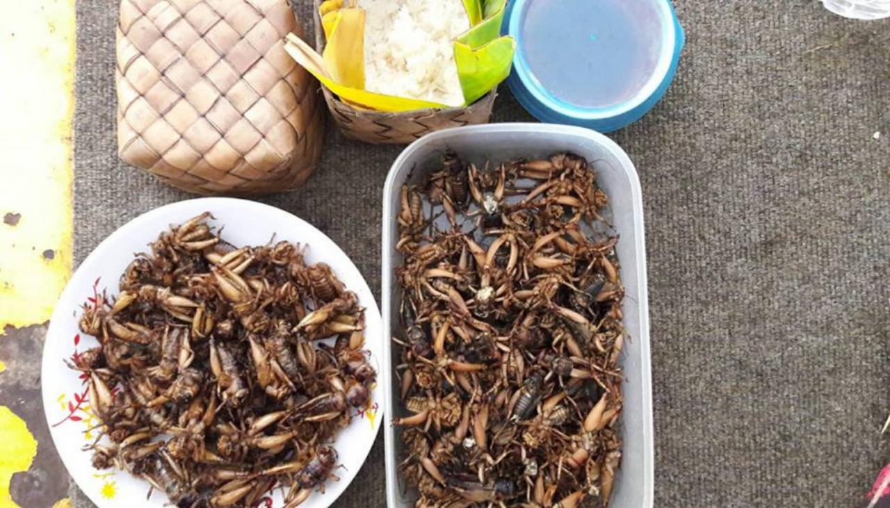 เมื่อช่วงบ่ายวันที่ 14 ก.ค. 60 ผู้สื่อข่าวรายงานว่า พบชาวสวนส้มโอเวียงแก่นต่างนำค้อง (กระม้อง) หรือ ภาชนะปิดเปิดฝาได้เดินทางไปที่สวนส้มโอ ทราบต่อมาว่าเจ้าของสวนและเพื่อนบ้านที่มีสวนส้มโอติดกับแม่น้ำงาว มุ่งหน้าลุยน้ำไปเก็บจี้กุ่ง หรือ หรือจิ้งหรีดชนิดใหญ่ ที่หนีน้ำท่วมไต่ขึ้นต้นส้มโอ หรือ กิ่งไม้ที่อยู่เหนือระดับน้ำซึ่งมีเป็นจำนวนมาก บางรายสามารถเก็บได้จำนวนหลายร้อยตัวหรือเป็นพัน สามารถนำประกอบเมนูได้หลายอย่าง รวมทั้งเป็นเมนูกับแกล้ม หากได้จำนวนมากจะแบ่งให้บ้านใกล้เคียง เหลือจะนำไปขายต่อที่ร้านอาหารหรือตลาดชุมชน