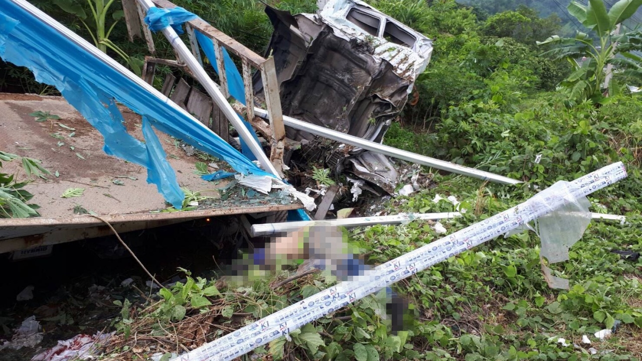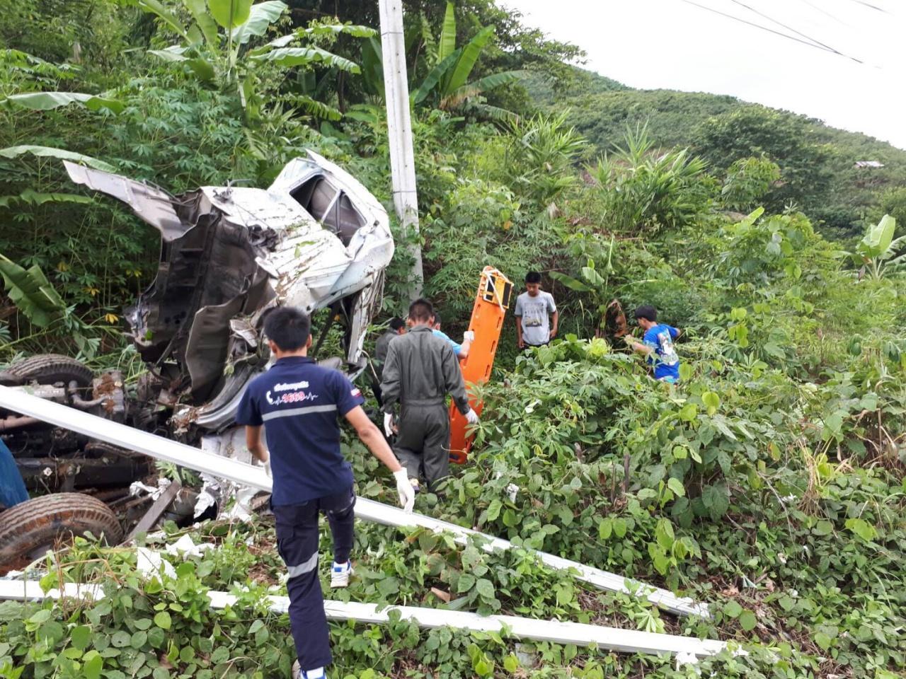 รถบรรทุกเสียหลักพุ่งลงข้างทาง ถนนสายท่าตอน-แม่จัน ที่เชียงใหม่ คนขับตายในที่เกิดเหตุ คนงานที่มาด้วยเจ็บอีก 5 ราย คาดเบรกแตก