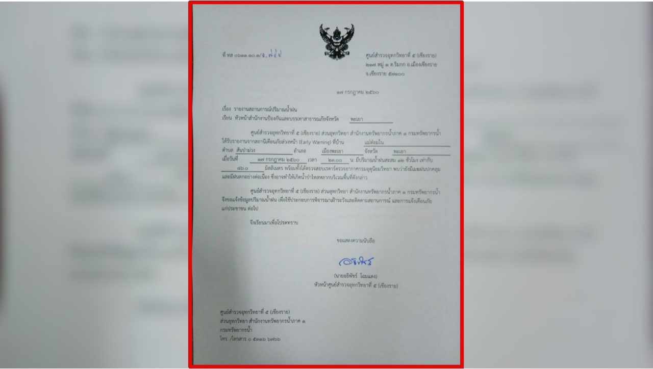 ภาพรายงานปริมาณน้ำฝนของ จ.พะเยา จากทวิตเตอร์ เรื่องจริงผ่านเลนส์ @K5_Rescue