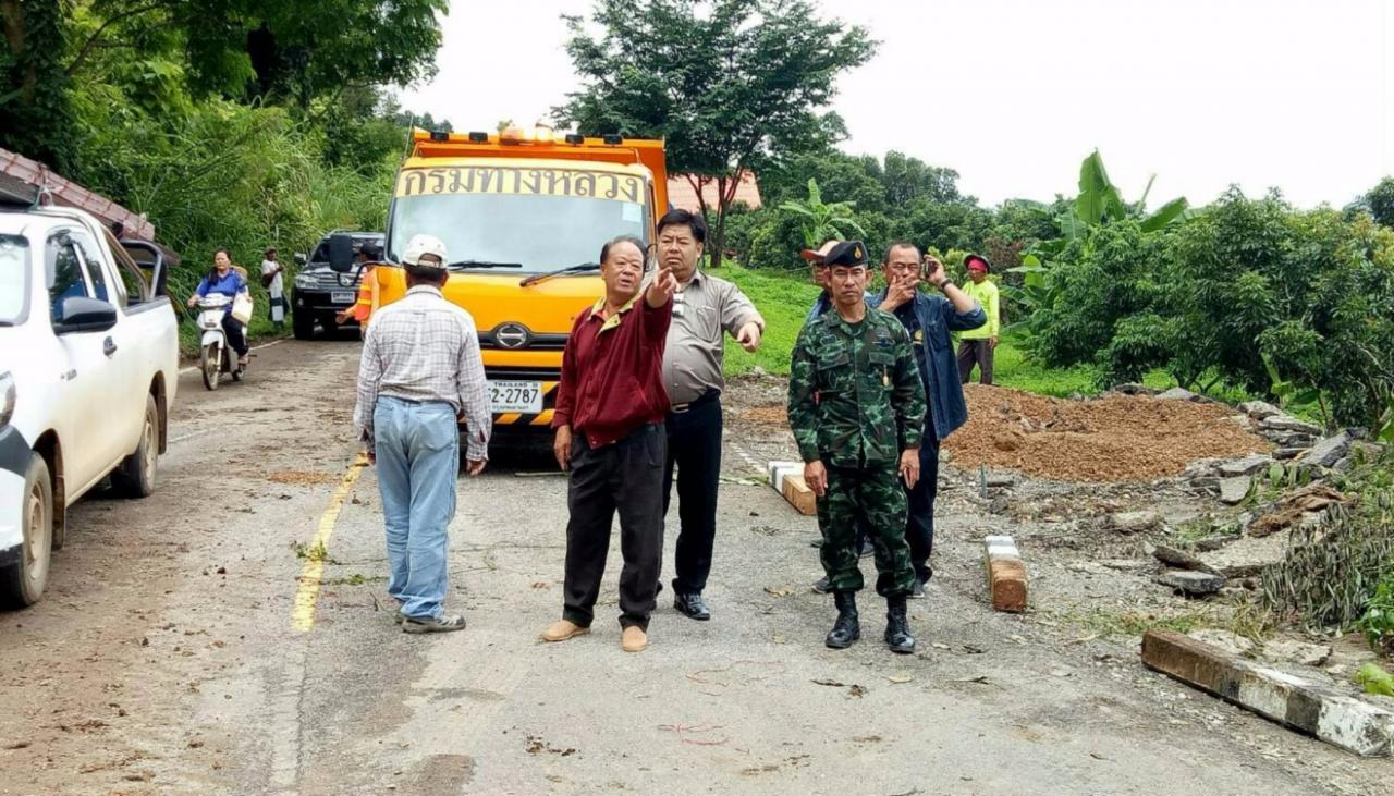 ขณะเดียวกัน พ.ต.เจกษฎา แก่นจันทร์ หน.ชป.ประสานงาน คดร.ดอยยาวฯ เผยว่า ได้รับแจ้งจากชาวบ้านว่าถนนทางหลวง 1093 ช่วงระหว่าง บ้านร่มฟ้าหลวง-บ้านร่มโพธิ์เงิน ต.ปอ อ.เวียงแก่น ก็เกิดการทรุดตัวประมาณสิบเมตร รถสามารถวิ่งได้ช่องทางเดียว หมวดการทางเวียงแก่นได้ติดตั้งป้ายเตือนแล้ว และจะของบประมาณฉุกเฉินมาซ่อมแซมต่อไป.