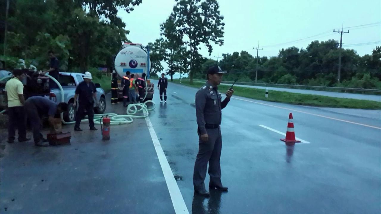ทั้งนี้ล่าสุด เมื่อเวลาประมาณ 08.30 น. เจ้าหน้าที่ได้ถ่ายเทน้ำมันเป็นที่เรียบร้อยแล้ว และได้ปิดวาล์วน้ำมันเพื่อความปลอดภัย พร้อมประสานรถเครนเข้ายกรถต่อไป ส่วนสาเหตุของการเกิดอุบัติเหตุในครั้งนี้เจ้าหน้าที่จะได้สืบสวนหาสาเหตุที่แท้จริงต่อไป..