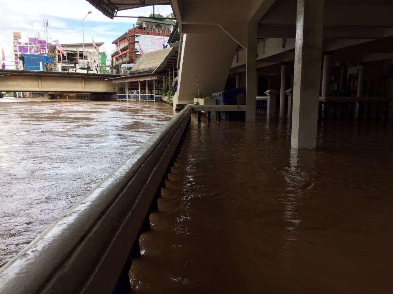 ขณะที่ อ.แม่สาย ไม่มีฝนตก และมีแดดออกตลอดทั้งวัน แต่เมื่อเวลา 13.30 น. บริเวณถนนลอดใต้สะพานมิตรภาพแห่งที่ 1 ระดับน้ำในแม่สาย ได้เพิ่มขึ้นอย่างรวดเร็วและต่อเนื่อง โดยล่าสุดวัดระดับน้ำได้ที่ 3.65 ม. เข้าท่วมถนนลอดใต้สะพานสูงประมาณ 80 ซม. ซึ่งก่อนหน้านี้เพียง 30 นาที วัดระดับได้ที่ 3.50 ม.