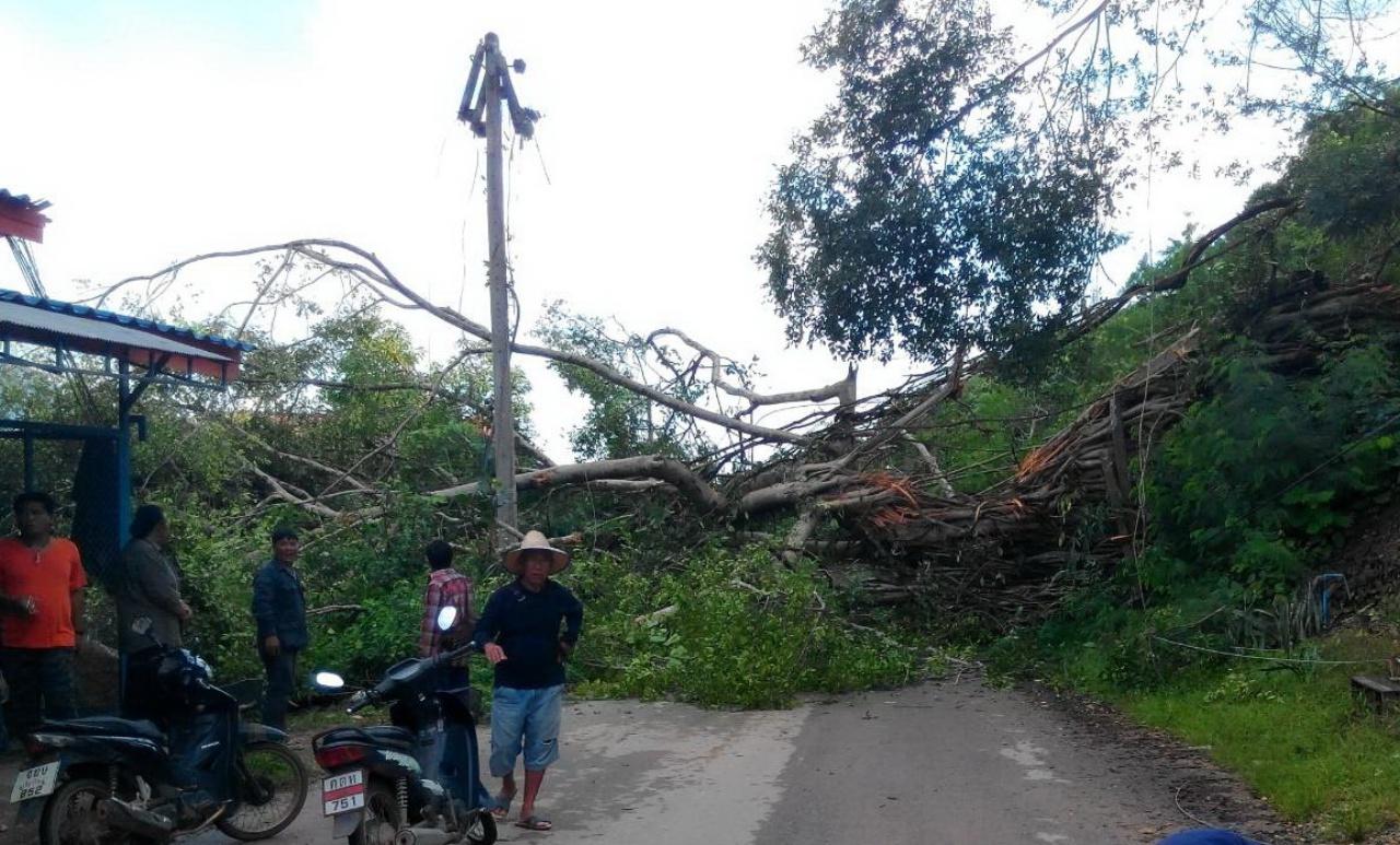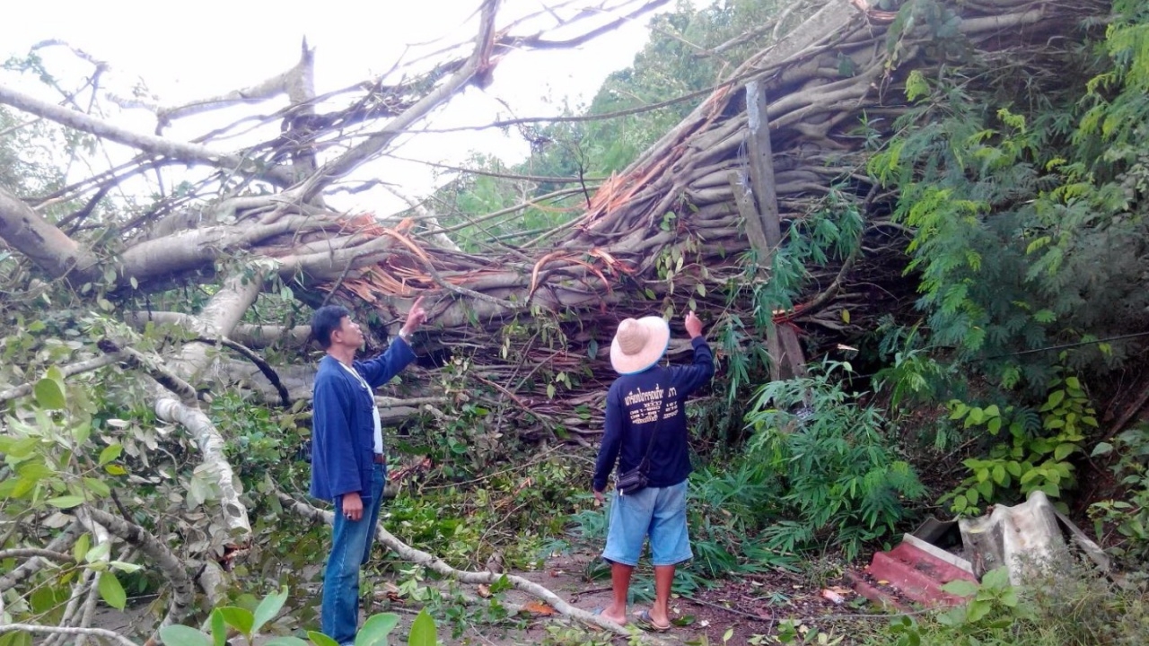 เมื่อวันที่ 26 ก.ค. 60 ศูนย์วิทยุ สภ.เชียงดาว จ.เชียงใหม่ รับแจ้งช่วงเช้าที่ผ่านมาจาก นายประทวน แก้วใจมา ผู้ใหญ่บ้านบ้านทุ่งหลุก ม.9 ต.เชียงดาว อ.เชียงดาว ว่า มีต้นไม้ล้มขวางถนนสายแม่อ้อ-ม่วงฆ้อง เชิงดอยบ้านทุ่งหลุก รถทุกชนิดไม่สามารถสัญจรผ่านได้ จึงประสาน พ.ต.ท.ปณาวุธ โชติพงศ์ สวป.สภ.เชียงดาว และสายตรวจเข้าทำการตรวจสอบ ที่เกิดเหตุพบต้นไทรขนาดใหญ่อายุกว่า 100 ปี โค่นแบบถอนรากถอนโคน กิ่งก้านหักขวางถนน ปลายกิ่งล้มพาดสายไฟฟ้าขาด และทับหลังคาบ้าน นายเจริญ ลวดขาว อายุ 88 ปี ทำให้หลังคาพังเสียหายทั้งหลัง ขณะเกิดเหตุ นายเจริญ กำลังนั่งรับประทานอาหารอยู่ในบ้าน โชคดีที่ไม่ได้รับบาดเจ็บ