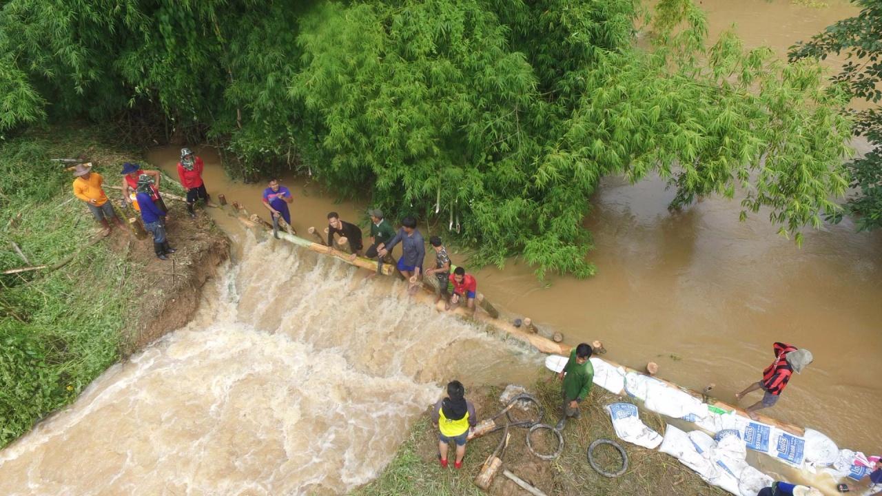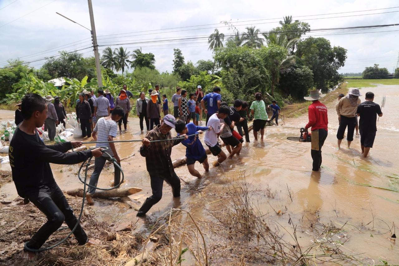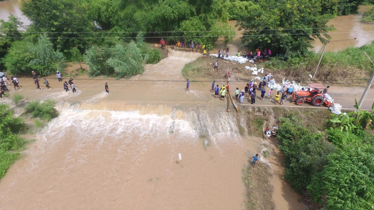 พนังคลองเนินกุ่ม จ.พิษณุโลก แตกร่วม 20 เมตร ส่งผลให้น้ำเอ่อล้นเข้าท่วมหลายหมู่บ้านและพื้นที่การเกษตร ด้านชาวบ้านและหลายหน่วยงานร่วมกันกรอกกระสอบทรายกั้นน้ำ