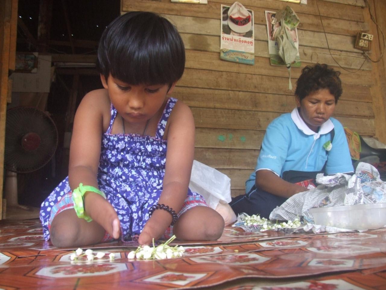 แม่ผู้อดทนวัย 43 ปี ชาวสุโขทัย ฐานะยากจนร้อยมาลัยหาเลี้ยงลูกสาววัย 8 ขวบพิการไร้มือและเท้าทั้ง 2 ข้าง เผยเลี้ยงและดูแลมาดีที่สุดเท่าที่จะทำได้ ก่อนประสบอุบัติเหตุจนทำงานไม่ได้ ต้องมาร้อยมาลัยขาย รายได้วันละ 100-200 บาท...