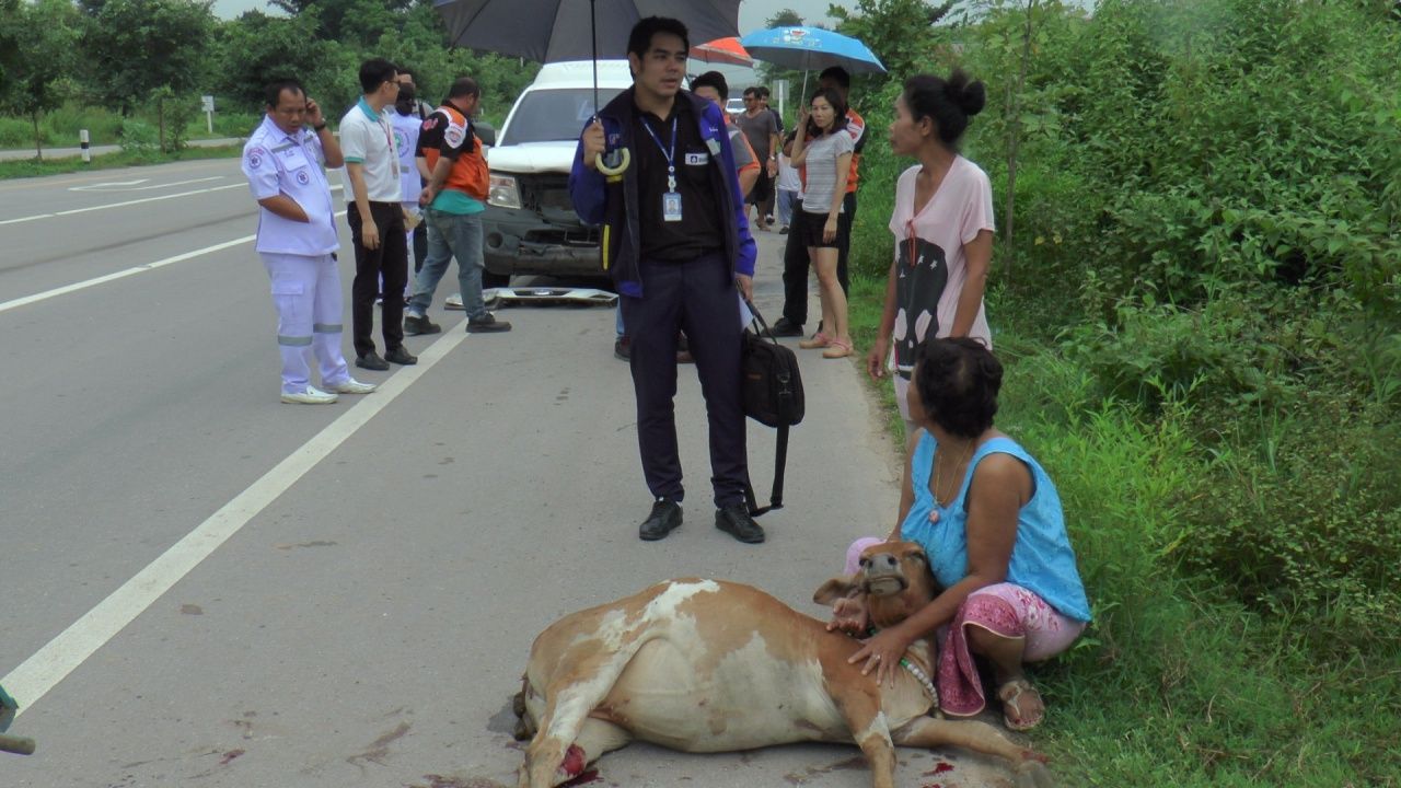 ขณะที่ นางสุนันทา กล่าวว่า เลี้ยงวัวจำนวน 5 ตัว ตัวที่ตายชื่อ เจ้าแก้วผูกไว้ในคอก แต่ได้หลุด วิ่งเตลิดออกมานอกถนน จึงตามหาจนไปพบว่าเจ้าแก้วถูกรถชน ซึ่งนอกจากต้องเสียวัวแล้ว ยังต้องชดใช้ค่าเสียหายให้กับรถยนต์ที่ชนวัวตายด้วย.