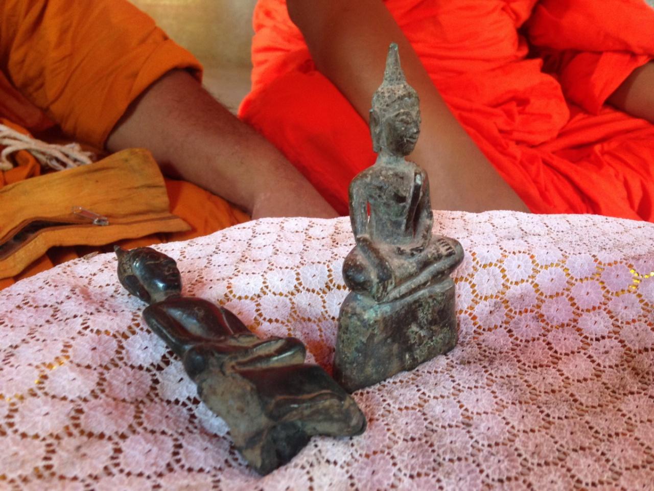 พระครูบัณฑิตย์วชิรโสภิส กล่าวต่อว่า จึงได้เกณฑ์ญาติโยมมาช่วยกันปรับพื้นที่ภายในวัด โดยเมื่อวานนี้ (5 ก.ย.30) ได้ลองขุดดินบริเวณใต้ฐานชุกชีจึงได้พบพระเครื่อง เป็นพระลักษณะพระเชียงแสนเนื้อดินดำขนาด 1 นิ้ว จำนวน 504 องค์และพระบูชาเนื้อสำริดอีกจำนวนหนึ่งในพื้นที่บริเวณดังกล่าว จึงได้นำขึ้นมาเก็บรักษาไว้เพื่อจะได้ประชุมคณะกรรมการวัดเพื่อเตรียมนำออกมาให้ประชาชนได้บูชา เพื่อหารายได้เข้าวัดต่อไปในช่วงฝั่งลูกนิมิตปลายปีนี้