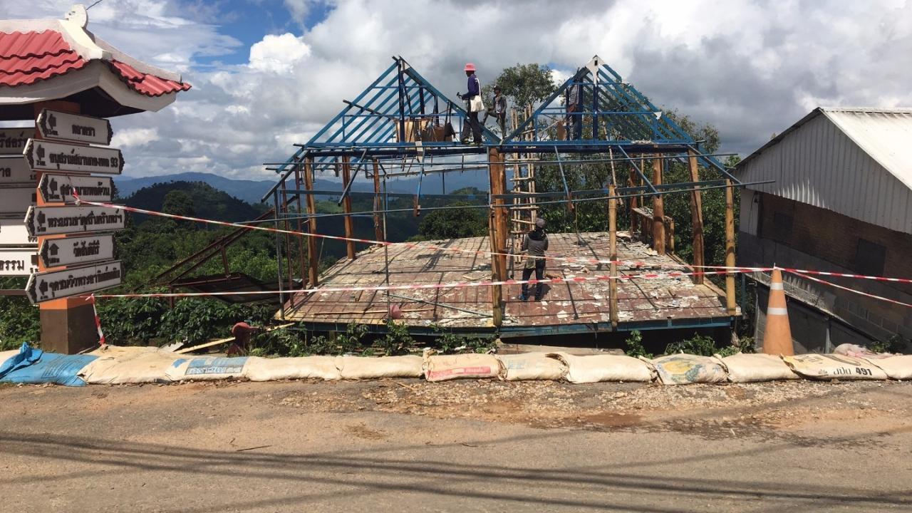 นายณรงศักดิ์ โอสถธนากร ผู้ว่าฯเชียงราย กล่าวว่า ได้สั่งการให้ ปภ.จังหวัดเชียงราย เข้าสำรวจพื้นที่พบว่าหากตัวอาคารยังอยู่อาจสร้างความเสียหายเนื่องจากน้ำหนักของตัวอาคารกดทับไหล่ทางอาจทำให้ถนนทรุดตัวลุกลามเป็นวงกว้าง และจะส่งผลกระทบต่อการท่องเที่ยวในฤดูหนาวที่ใกล้จะถึงนี้เมื่อเส้นทางสัญจรเสียหาย จึงเห็นสมควรต้องรื้อถอนสิ่งปลูกสร้าง บริเวณดินทรุดเพื่อป้องกันความเสียหาย