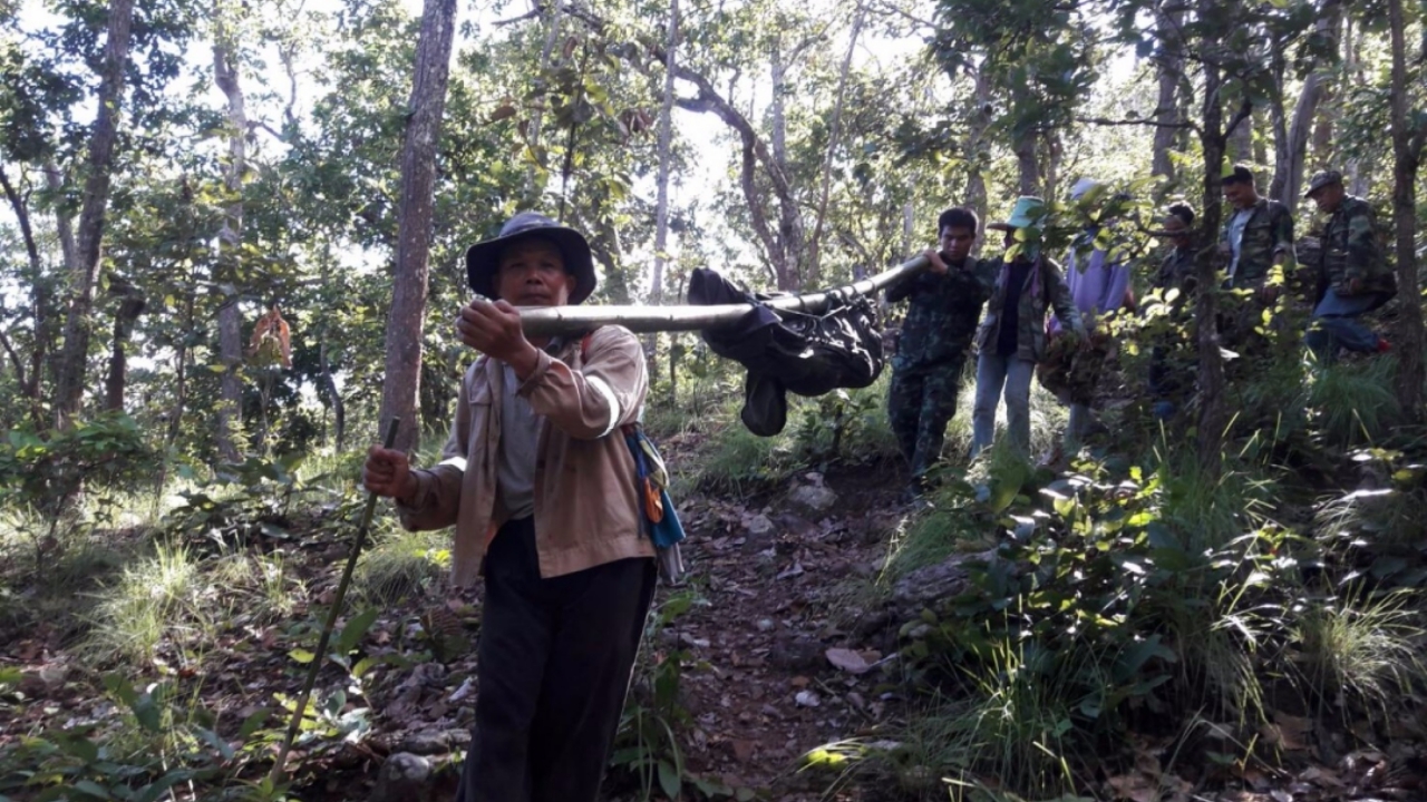 ต่อมาชาวบ้าน จำนวน 20 คน ร่วมเดินทางไปนำศพลงมาหลังได้ตรวจสอบที่เกิดเหตุ พบศพ นายทรงศักดิ์ ลาบุ อายุ 58 ปี บ้านเลขที่ 5/4 หม่ 2 ต.นาขุม อ.บ้านโคก สวมเสื้อยืดคอปกสีเขียวแขนยาว สวมกางเกงยีนส์ ตรวจตามร่างกายพบว่าที่บริเวณต้นขา น่อง และเท้าขวาถูกหมูป่าใช้เขี้ยวไล่แทงคาดว่าหมูป่าจะหนักประมาณ 200 กิโล จนเลือดไหลไม่หยุดและทนพิษบาดแผลไม่ไหว ในขณะญาติห้ามลงมาจากเขาเพื่อส่ง รพ.บ้านโคก แต่ก็มาเสียชีวิตระหว่างกลางทาง