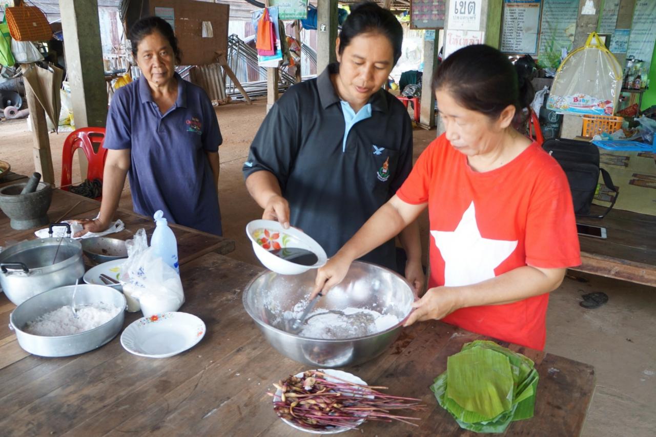 นางจำเรียง เมฆี อายุ 45 ปี ผู้ช่วยผู้ใหญ่บ้าน ม.6 ต.บ้านป้อม อ.คีรีมาศ ผู้สืบทอดการทำ "ขนมดอกดิน" มาแต่รุ่นปู่ย่าตายาย เล่าว่าในช่วงเดือน ก.ย.-ต.ค.ของทุกปี ตนและญาติๆ จะพากันขึ้นไปเก็บเห็ดโคนบนเขาพระแม่ย่าลงมาทำเป็นอาหาร และยังเก็บ "ดอกดิน" ซึ่งมักขึ้นใกล้ๆ ชุมเห็ด มาทำเป็นขนมรับประทานกันอีกด้วย ขั้นตอนก็คือ จะนำดอกดินมาล้างทำความสะอาด ก่อนหั่นเป็นชิ้นๆ แล้วนำไปโขลกจนละเอียดเติมน้ำต้มสุกแล้วคนให้เข้ากันก็จะได้น้ำดอกดินที่มีสีคล้ำออกม่วง จากนั้นนำไปกรองด้วยผ้าขาวบางจนได้เฉพาะน้ำดอกดินล้วนๆ เติมแป้งข้าวเหนียวและน้ำตาลทรายลงไป คลุกเคล้าให้เข้ากันจนเป็นเนื้อเดียว ก่อนห่อด้วยใบตองโรยหน้าด้วยมะพร้าวทึนทึกขูดเคล้าเกลือเล็กน้อยแล้วนำไปนึ่ง ใช้เวลาเพียงธูปหมดดอก หรือ ประมาณครึ่งชั่วโมง ก็จะได้ "ขนมดอกดิน" ที่หอมหวานมันสุดแสนอร่อย จะแจกจ่าย หรือ วางขายหน้าบ้านเท่าไรก็ไม่พอ แถมยังมีเพื่อนบ้านสั่งซื้อกันเป็นจำนวนมาก เพราะ 1 ปีจะได้ทานกันแค่ครั้งเดียวคือในช่วงนี้เท่านั้น และน้อยคนนักที่จะรู้จัก "ดอกดิน" ยังมีสรรพคุณทางยา ใช้รักษาอาการเบาหวานและอาการบวมตามผิวหนังได้อีกด้วย.