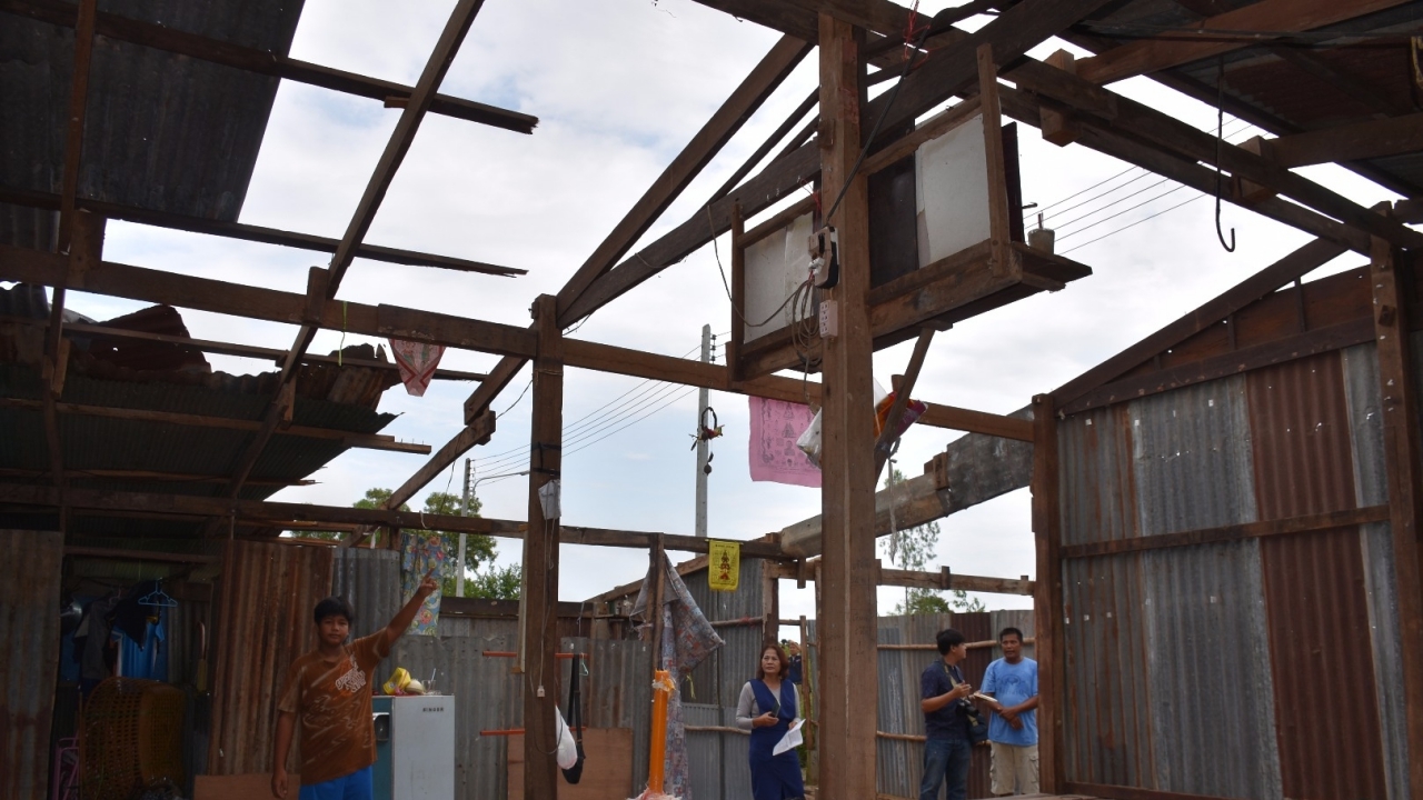 เมื่อเวลา 09.00 น. วันที่ 22 ก.ย. ผู้สื่อข่าวรับแจ้งจากชาวบ้านว่า มีบ้านประชาชนถูกพายุฝนกระหน่ำลมพัดบ้านพังเสียหายอย่างหนัก ไปตรวจสอบที่บ้านเลขที่ 115/2 หมู่ 9 ต.หัวรอ อ.เมือง จ.พิษณุโลก พบเป็นบ้านไม้ชั้นเดียว ฝาบ้านหลังคาใช้สังกะสี เนื้อที่ประมาณ 80 ตารางวา อยู่กลางทุ่งนาโล่งกว้าง พบ นายวีระชัย จันทร์เทียน อายุ 46 ปี และนางรัชนี จันทร์เทียน อายุ 35 ปี สองสามีภรรยาเจ้าของบ้าน กำลังช่วยกันเก็บกวาดทำความสะอาดบ้านพักของตนเอง หลังจากเมื่อวานที่ผ่านมามีพายุฝนตกหนักในพื้นที่ และมีลมพัดอย่างรุนแรง จนทำให้แรงลมหอบหลังคาที่มุงด้วยสังกะสีปลิวไปตกกลางทุ่งนาห่างจากตัวบ้านประมาณ 100 เมตร ข้าวของเครื่องใช้ในบ้านเสียหายหลายรายการ เช่น เครื่องใช้ไฟฟ้า ตู้เสื้อผ้า เตียงนอน เปียกน้ำฝนทั้งหมด และกระแสไฟฟ้าดับต้องจุดเทียนนอนช่วงคืนที่ผ่านมา