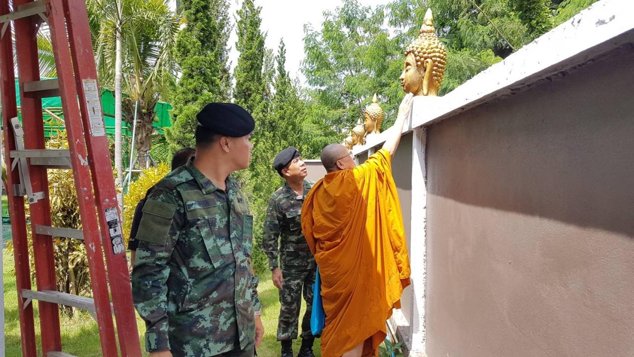 ขณะที่ เจ้าหน้าที่ได้พยายามให้ผู้รับเหมาโทรศัพท์ติดต่อเจ้าของบ้านทางโทรศัพท์ แต่ น.ส.นวลจันทร์ ไม่ยอมมาพบเจ้าหน้าที่อ้างว่าติดธุระ โดยทางเจ้าหน้าที่ทหารได้ชี้แจงถึงความไม่เหมาะสม ที่นำเศียรพระมาตกแต่งบ้าน กำแพงรั้วและวางบนพื้น จึงให้ทางเจ้าของบ้านได้ดำเนินการปรับปรุง รื้อเอาเศียรพระที่บนกำแพงออกทั้งหมด รวมทั้งให้นำเศียรพระที่วางอยู่บนพื้นทั้งหมด นำไปเก็บไว้ที่ห้องใดห้องหนึ่งหรือยกเก็บไว้บนที่สูง โดยทำให้เสร็จภายใน 2 อาทิตย์ ซึ่งเจ้าของบ้านก็จะแจ้งให้ทางผู้รับเหมารีบดำเนินการให้