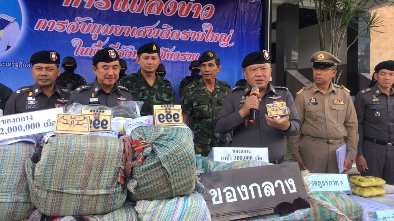 ผบช.ภ.5 ควง พ่อเมือง เปิด บก.ภ.จ.เชียงราย แถลงจับยาเสพติดรายใหญ่ 6 คดีสำคัญในจังหวัด ได้ของกลาง ยาบ้า 3,263,200 เม็ด ยาไอซ์ 4 กก. พร้อมผู้ต้องหาจำนวน 9 ราย...