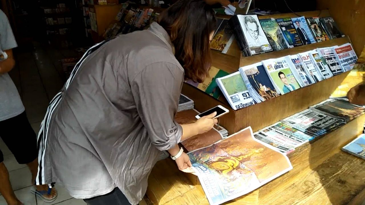 เมื่อวันที่ 13 ต.ค.60 บรรยากาศของการจำหน่ายหนังสือพิมพ์ไทยรัฐฉบับพิเศษ 'ไทยรัฐส่งใจสู่ฟ้าอาลัยพ่อฉบับพิเศษบันทึกประวัติศาสตร์' ฉบับวันที่ 13 ต.ค.60 ที่มีภาพ แสง สีเสียง พระบาทสมเด็จพระปรมินทรมหาภูมิพลอดุลยเดช รัชกาลที่ 9 ที่ร้านเหรียญพานิช ต.เวียง อ.เมือง จ.พะเยา เอเย่นต์ตัวแทนขายนสพ.ไทยรัฐ พบว่า มีประชาชนและผู้คนต่างพากันเดินทางมาซื้อหนังสือพิมพ์ไทยรัฐฉบับพิเศษกันอย่างต่อเนื่อง บางคนซื้อเก็บไว้เป็นที่ระลึกบางคนซื้อไปฝากเพื่อนและญาติ บางคนก่อนซื้อเอากล้องโทรศัพท์มือถือที่ได้โหลดแอปพลิเคชัน Thairath AR ไว้แล้วนำมาเปิดส่องดูถ่ายภาพหน้าปกหนังสือพิมพ์ไทยรัฐฉบับวันที่ 13 ต.ค.-14 ต.ค. กันอย่างสนอกสนใจ