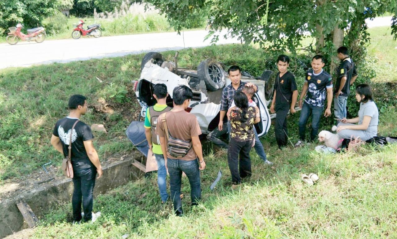 ร.ต.อ.พุทธิชัย มินเสน รอง สว.(สอบสวน) สภ.บ้านสวน อ.เมือง จ.สุโขทัย รับแจ้ง เมื่อเวลา 12.30 น. วันที่ 14 ต.ค. มีรถตกถนน บริเวณหลักกม.ที่ 45-46 ถ.เลี่ยงเมืองใกล้สี่แยกตาลเตี้ย ม.2 ต.ตาลเตี้ย และมีผู้ได้รับบาดเจ็บ จึงรุดไปตรวจสอบพร้อมหน่วยกู้ภัยข่าวภาพ